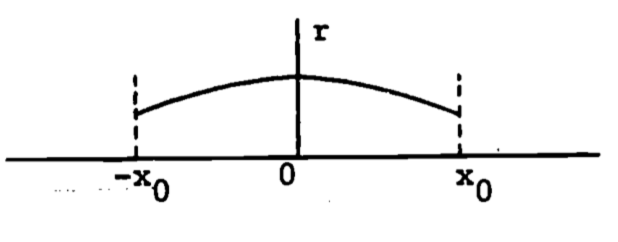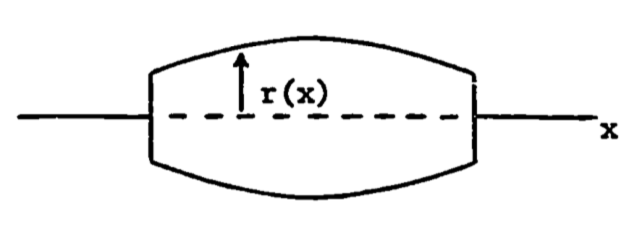 and is represented by \(r = a - bx^2\), \(a\) and \(b\) positive constants. The radius then changes with \(x\), and the integral must be used: