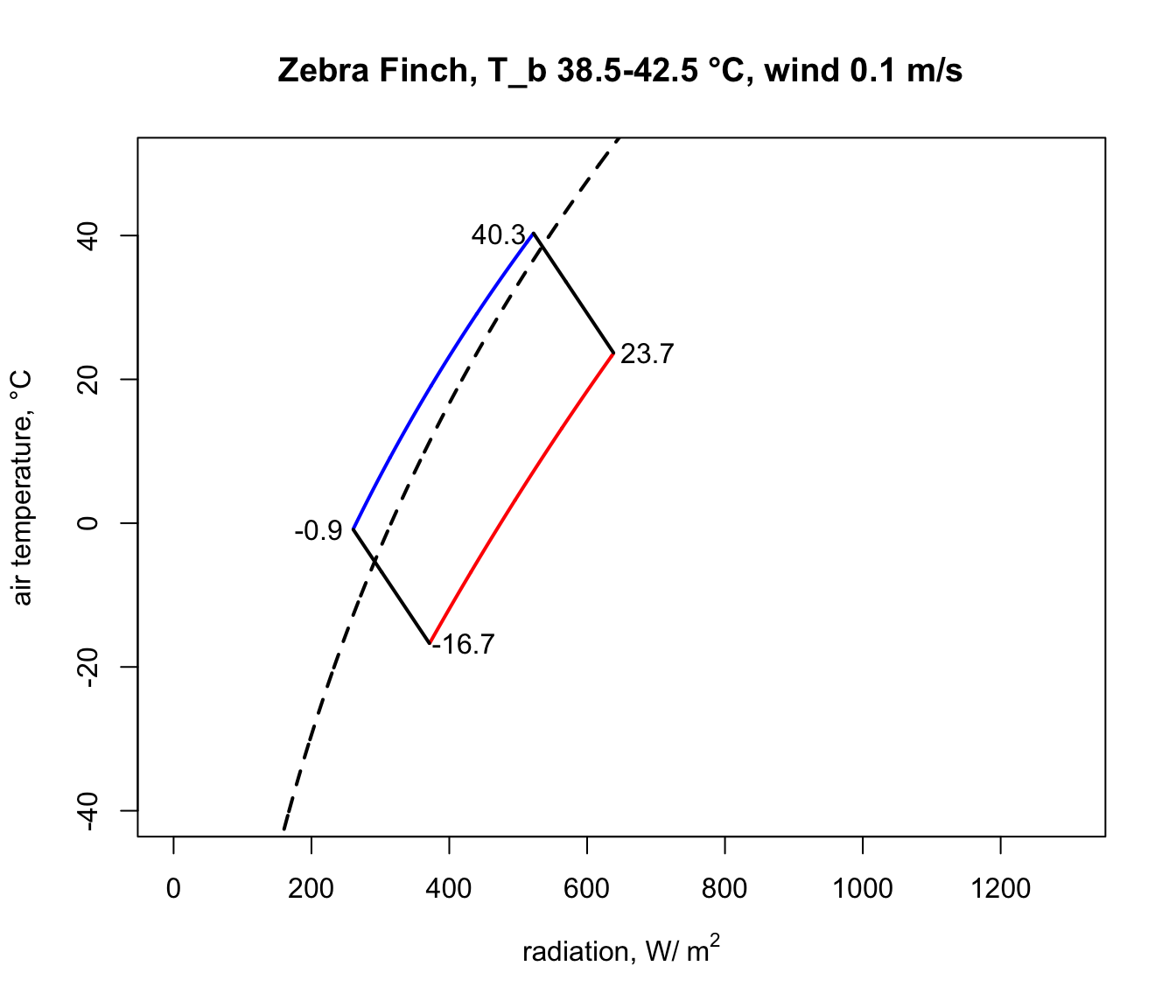 ylab='air temperature, °C',main=paste0("Zebra Finch, T_b ",