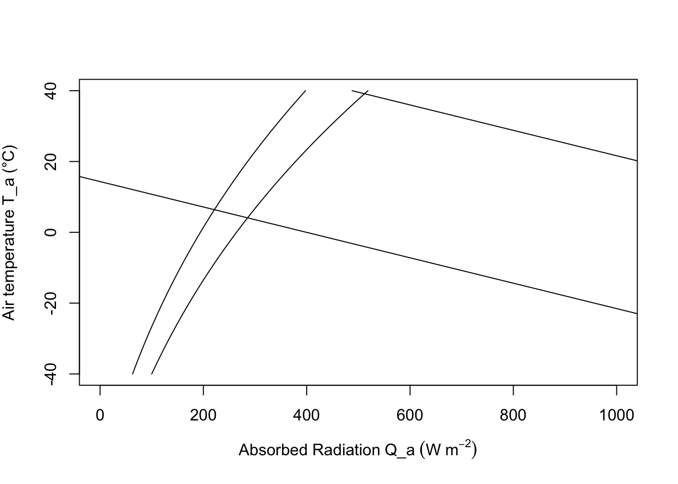 xlab=expression("Absorbed Radiation" ~ Q_a ~ (W ~ m^{-2})),