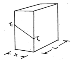 \[dT=-\frac{q_s}{kA}dx\] \[\int^{T_0}_{T_i}dt=-\frac{q_s}{kA}\int^x_0dx\] \[T_0-T_i=-\frac{q_s}{kA}x\] \[\begin{equation} q_s=\frac{kA}{x}(T_i-T_0) \tag{9.16} \end{equation}\]
