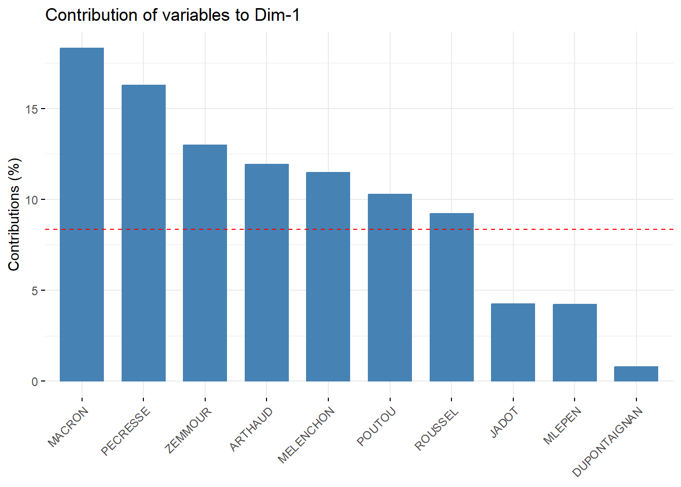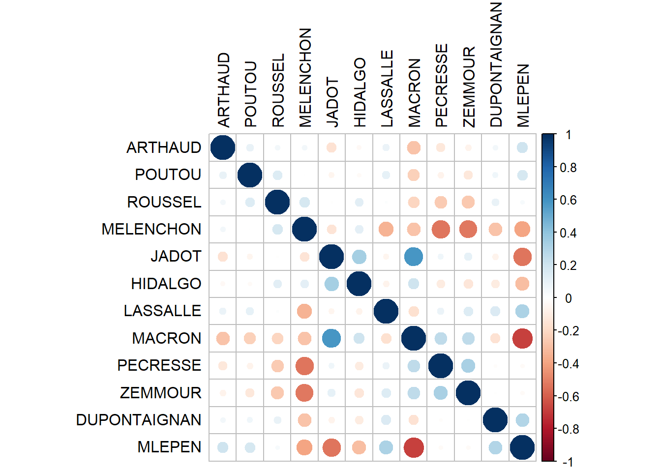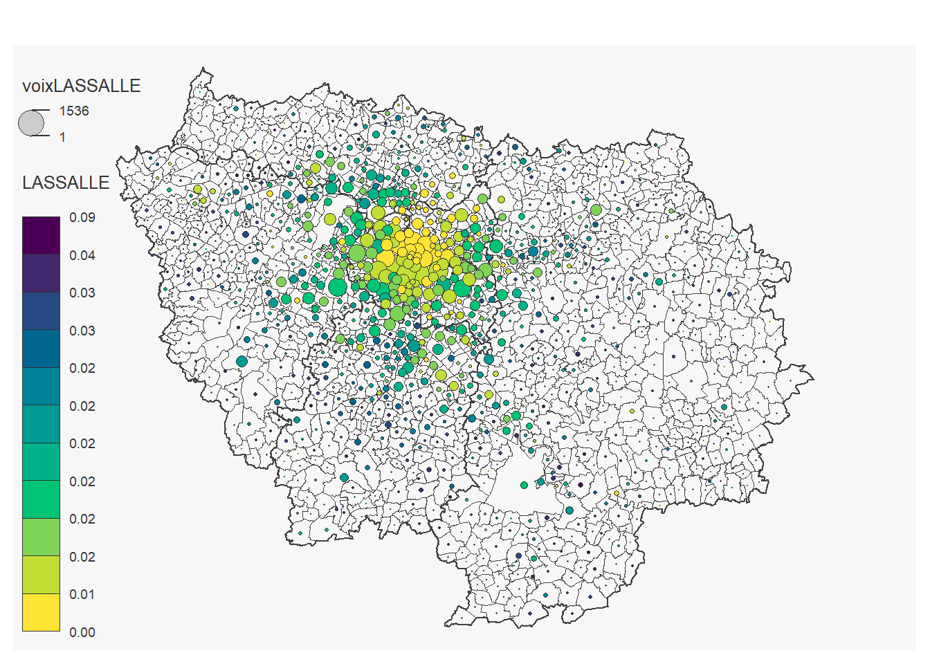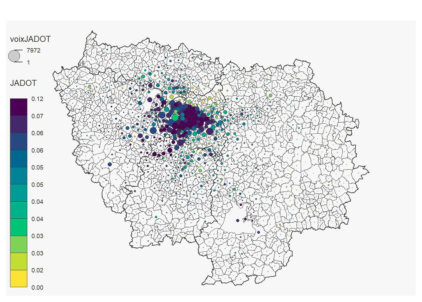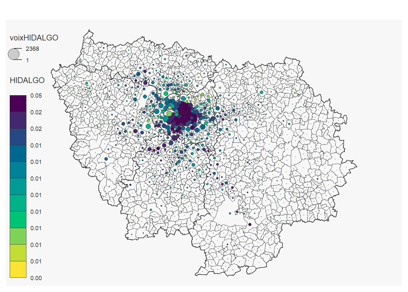 Dans le cas ici, on va plutôt réaliser une ACP suivant le premier objectif sur les votes exprimés aux élections en Île de France aux élections présidentielles de 2022. L’objectif sera de voir on retrouve des structures dans la géographie de cette élection.