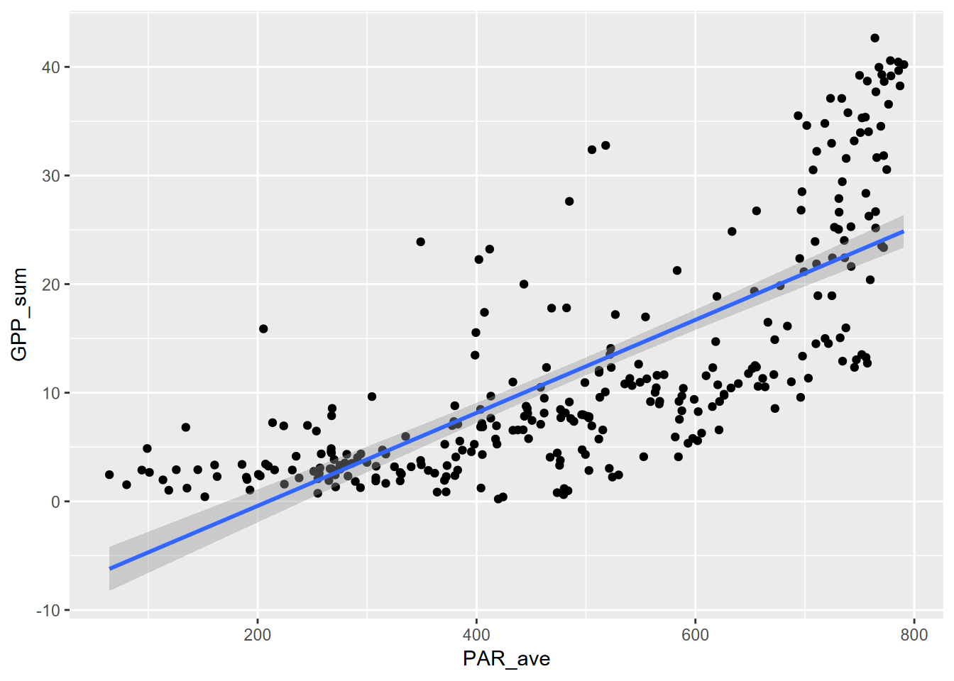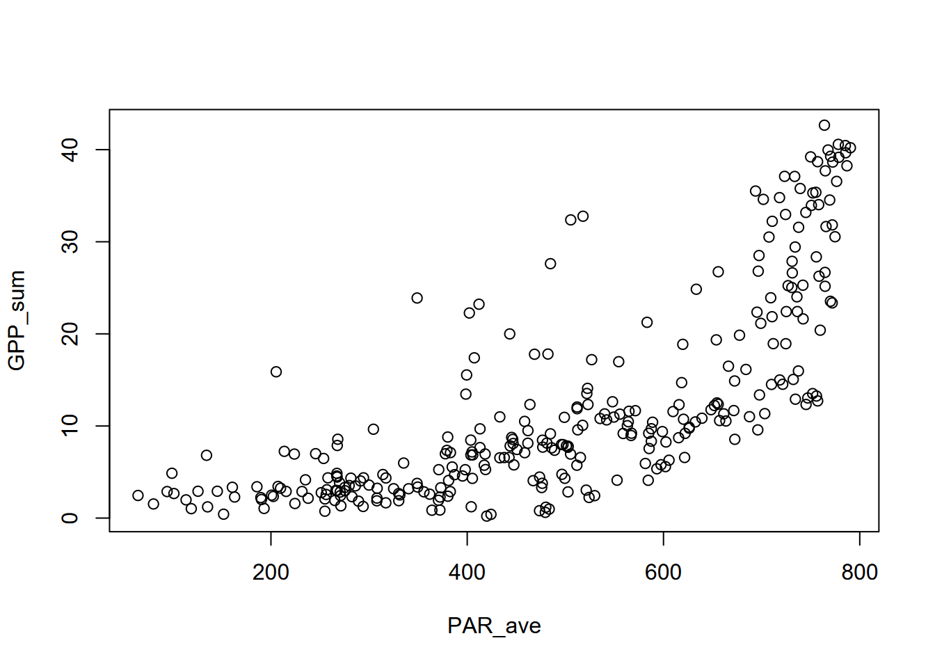 filter(GPP_sum != 0, !is.na(PAR_ave)) |>