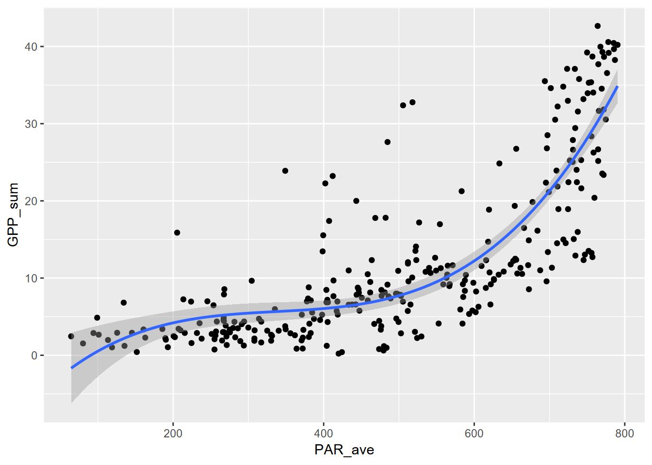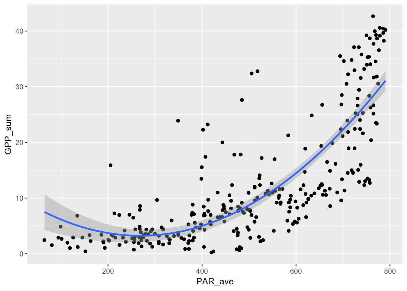 ## lm(formula = GPP_sum ~ poly(PAR_ave, ord, raw = T), data = Carbon_Flux)