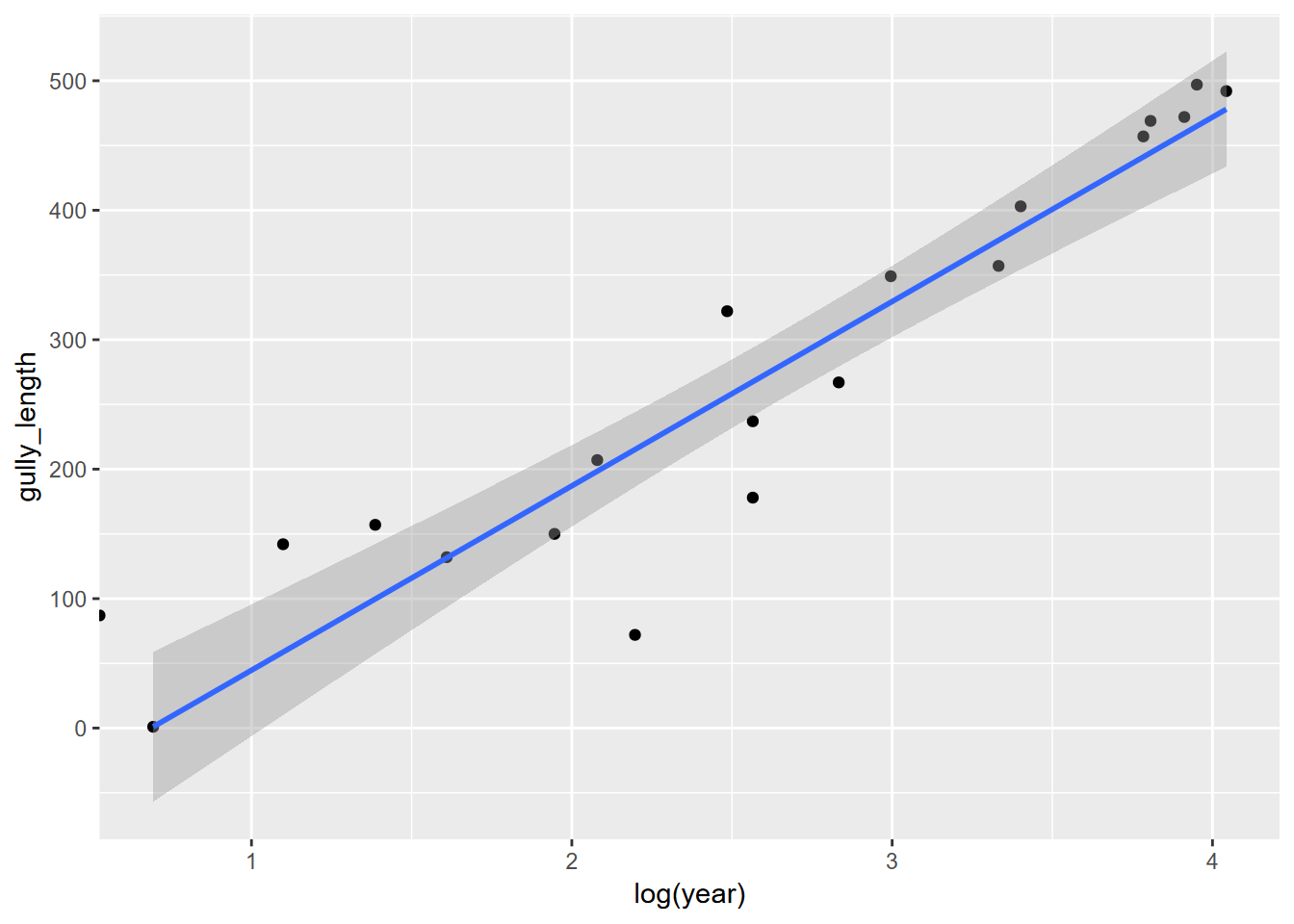 ## lm(formula = gully_length ~ log(year + 0.1), data = gully)