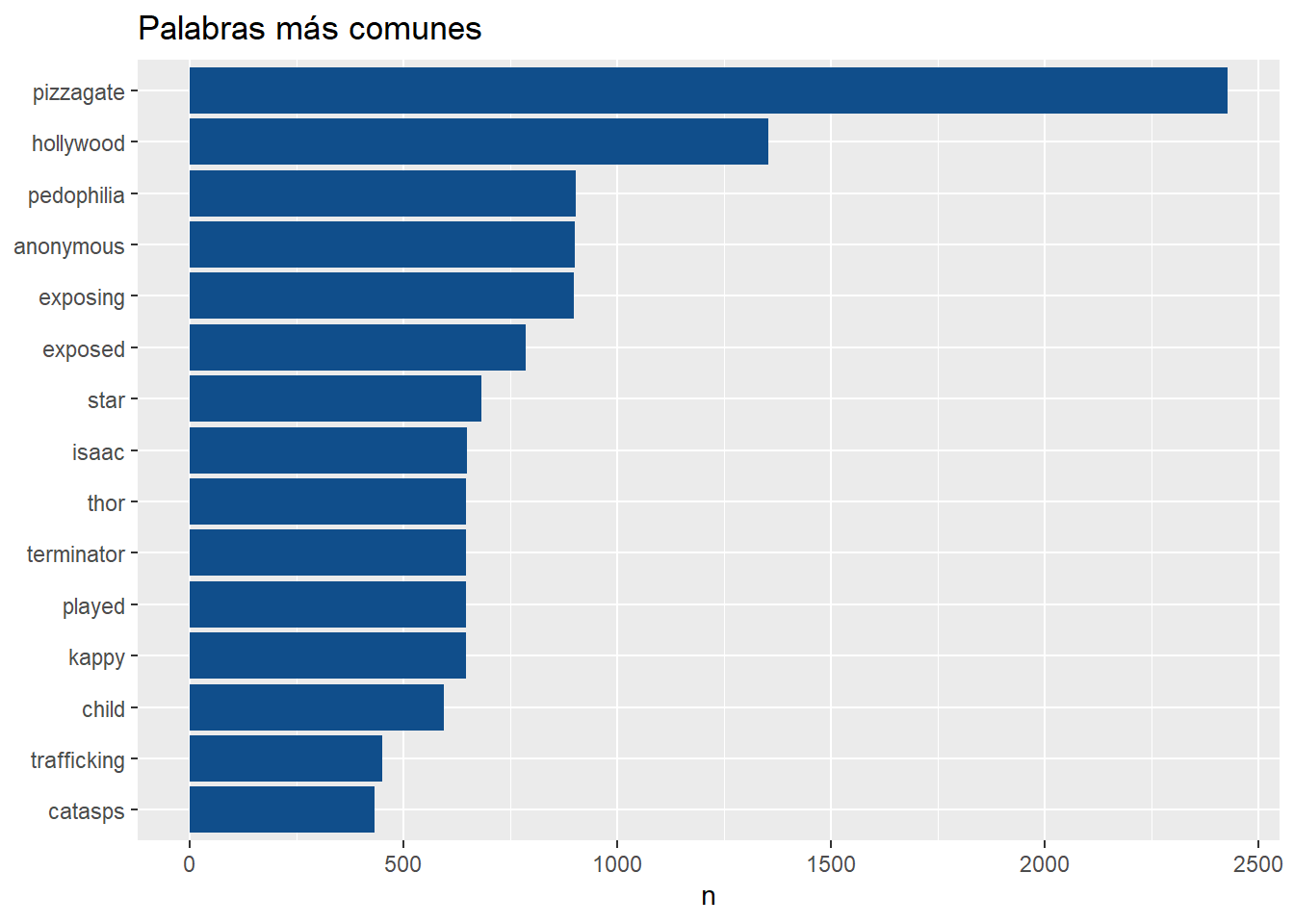 xlab(NULL) + coord_flip() + ggtitle("Palabras más comunes")