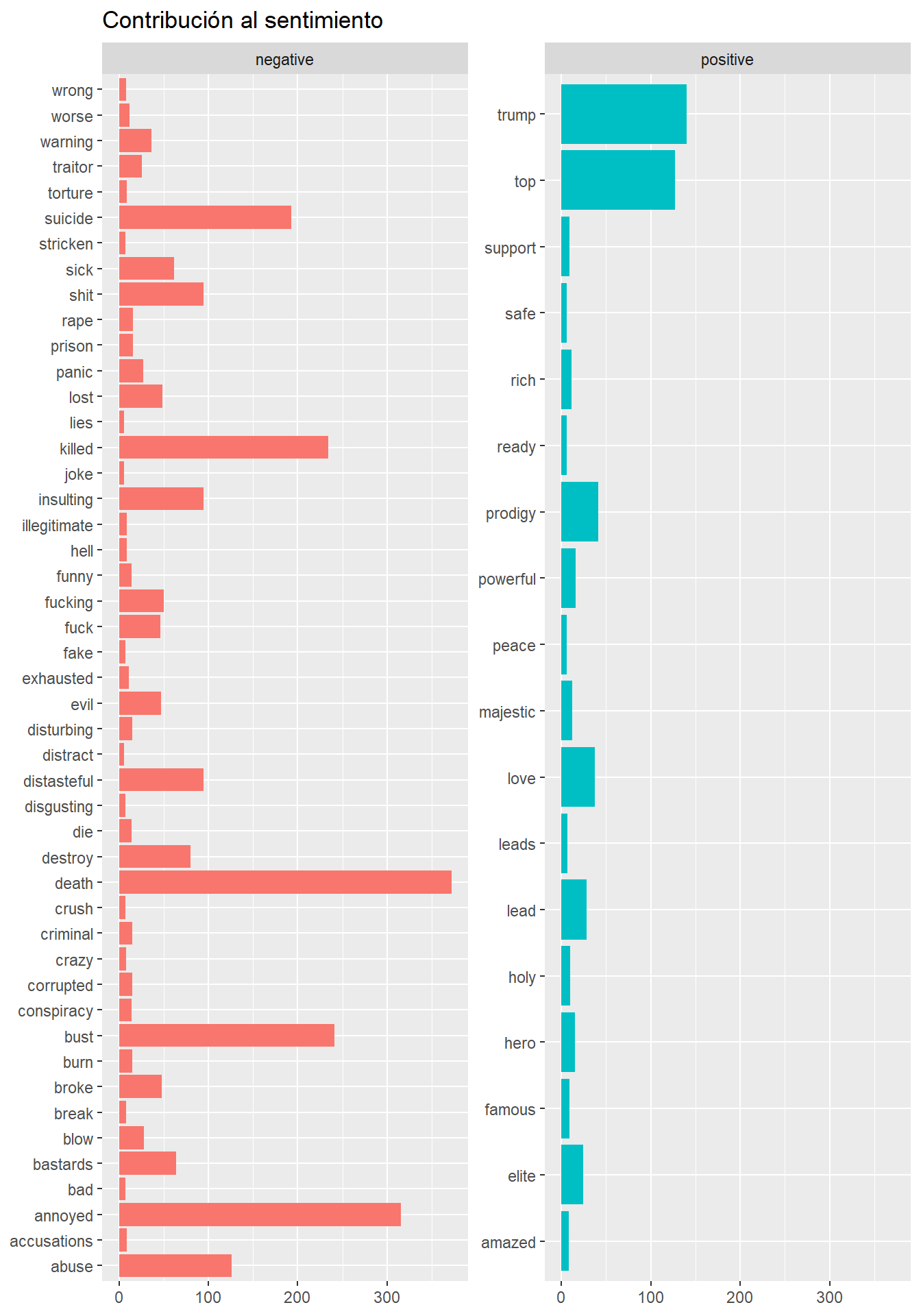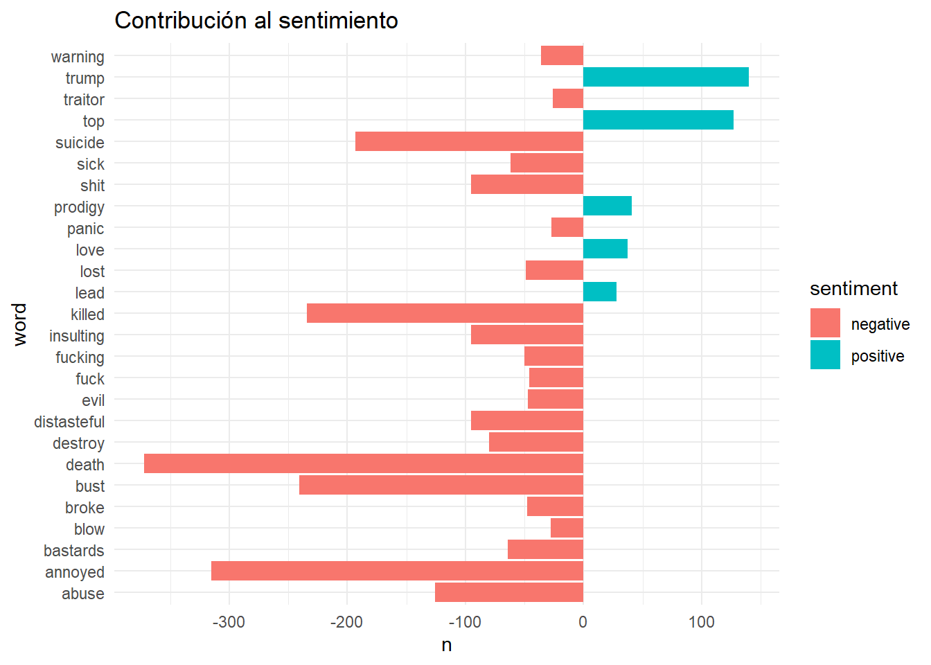 ggtitle("Contribución al sentimiento") + xlab(NULL) + ylab(NULL)+