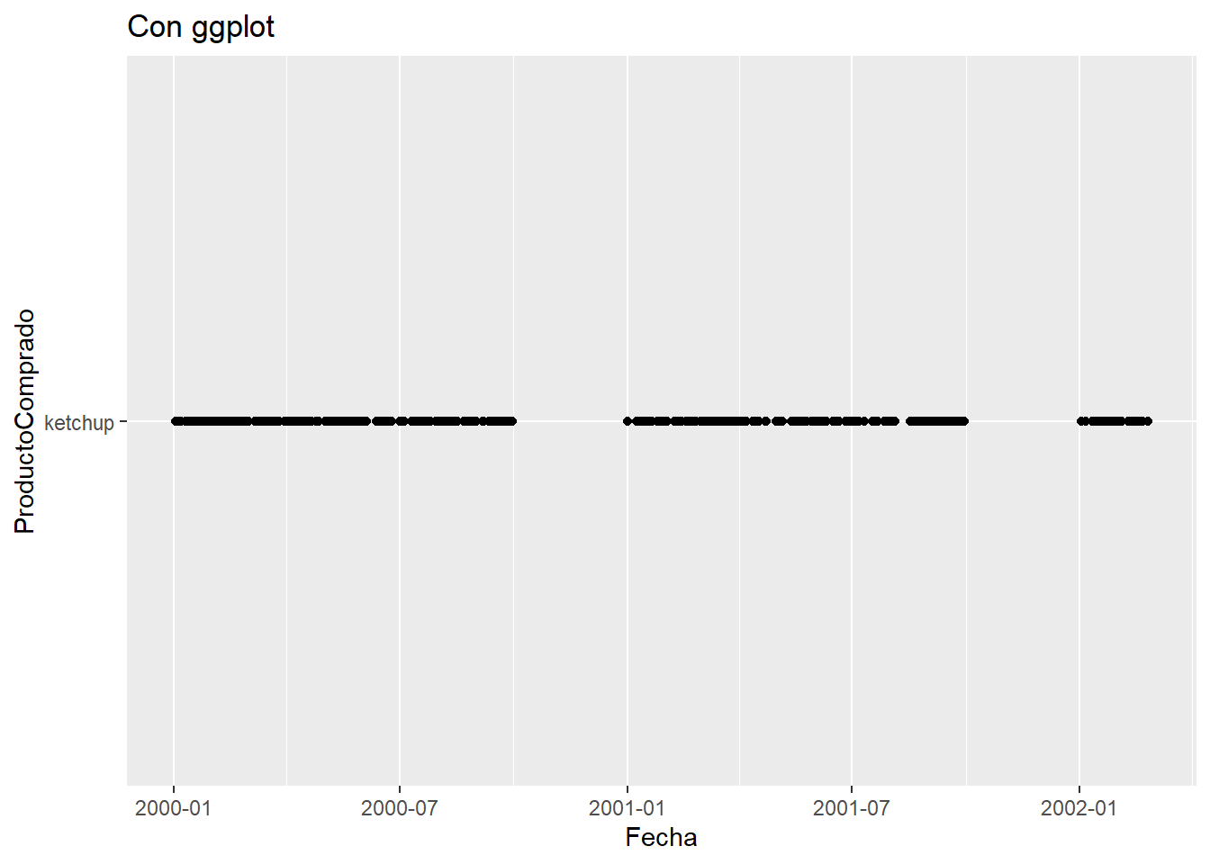 Aquí vemos en qué fechas ha sido comprado el producto ketchup: