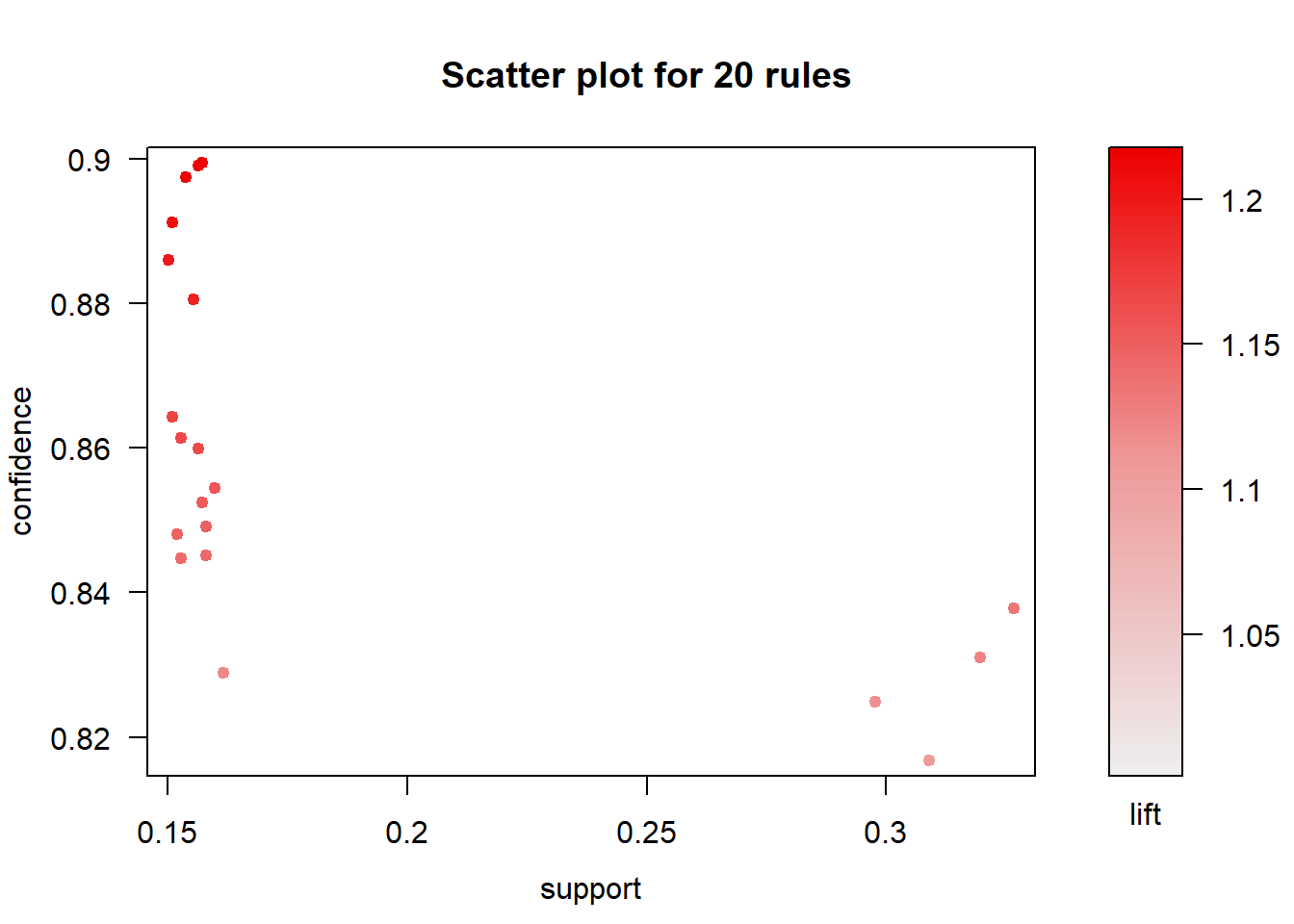 21 - Generar las reglas de asociación con 80% de confianza y 15% de soporte.