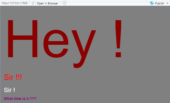 If you want to customize the text, Shiny allows you to work with HTML tags. A way to implement HTML tags is the Shiny tags$<name of the tag> function. Suppose that we want to create an impolite app that asks us in a strong manner.