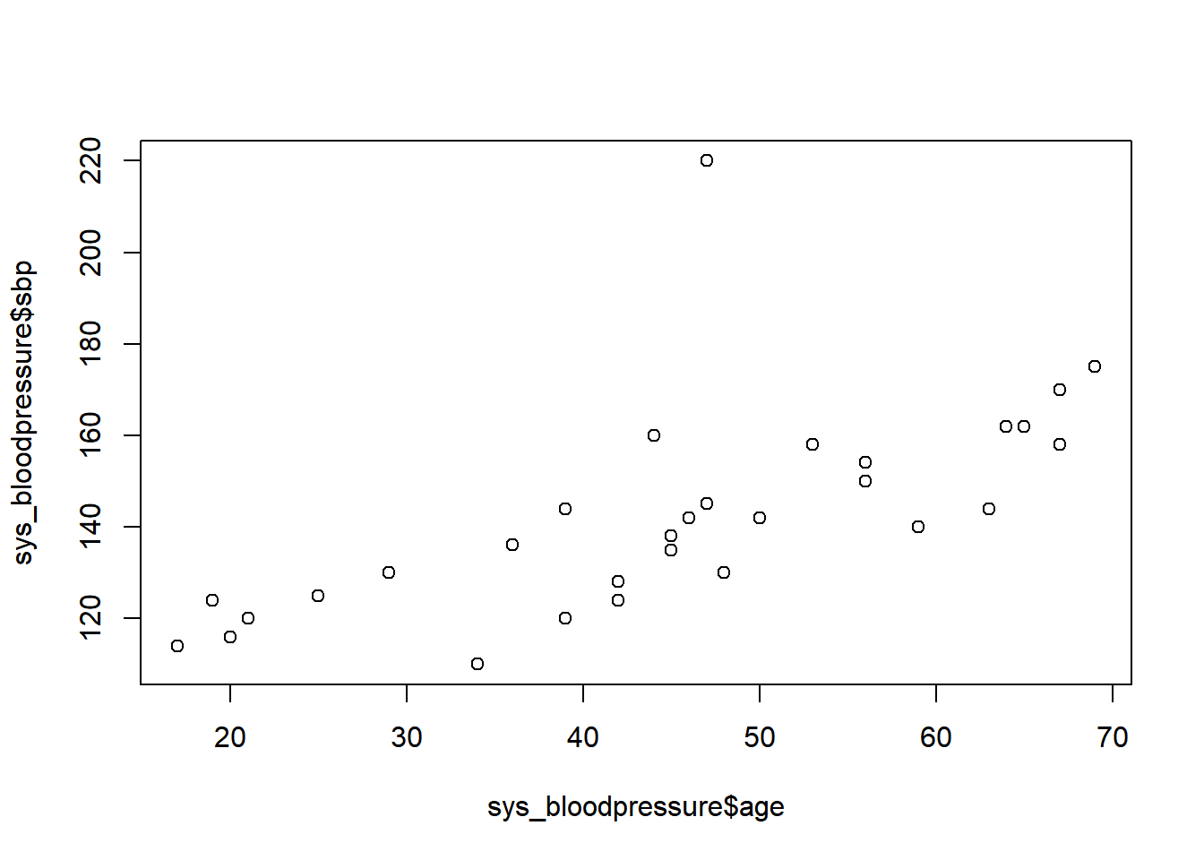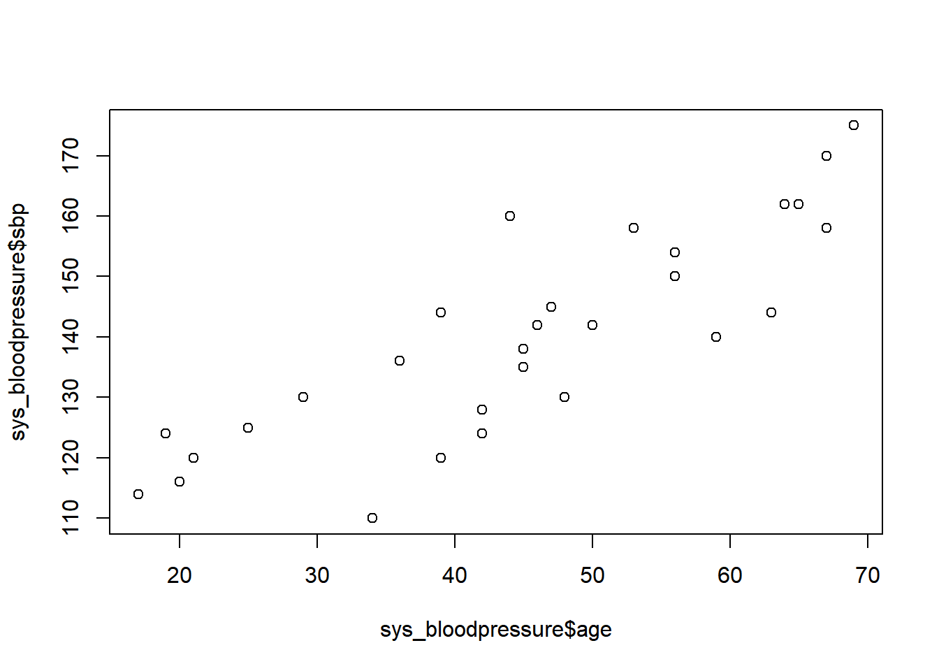 plot(sys_bloodpressure$age, sys_bloodpressure$sbp)