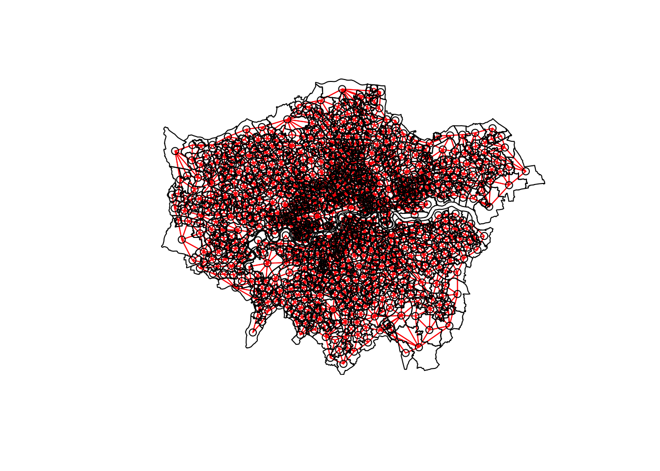 plot(msoa_nb, st_geometry(coordsMSOA), col="red")