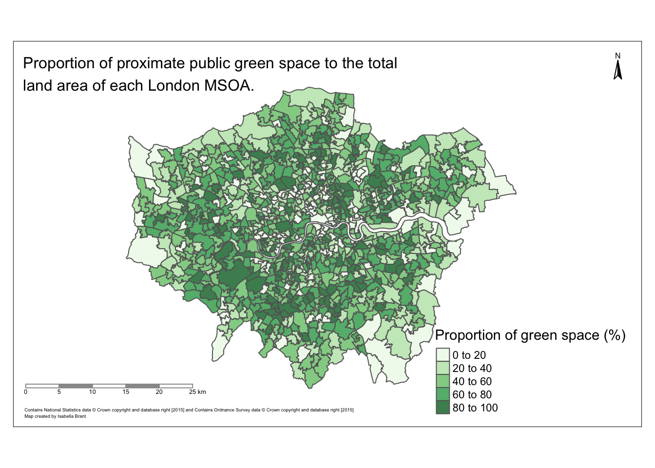 pr_gsm2/ha = proportion of proximate public green space area (> 2 hectares with 5 min proximity) to the total land area of each msoa.