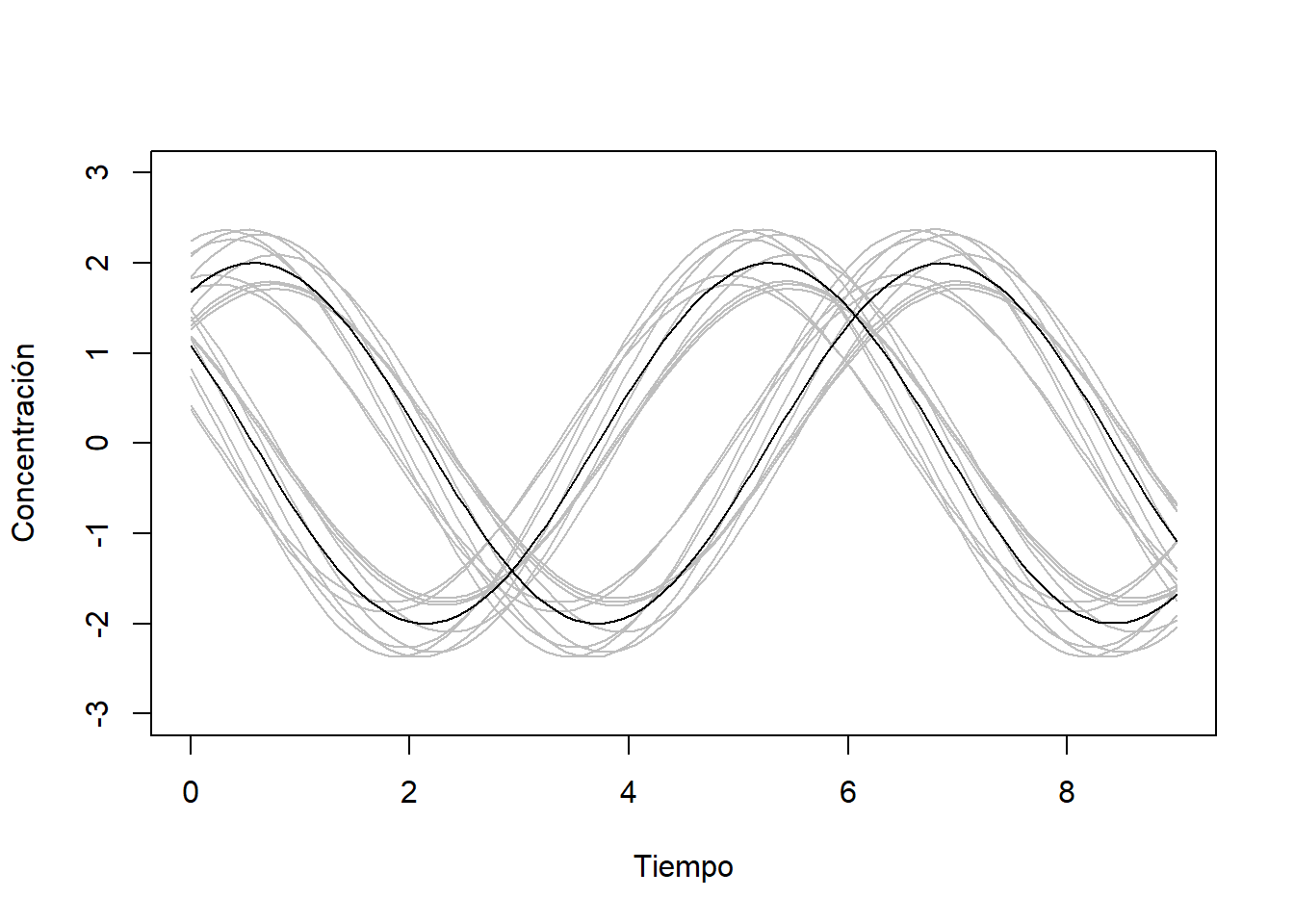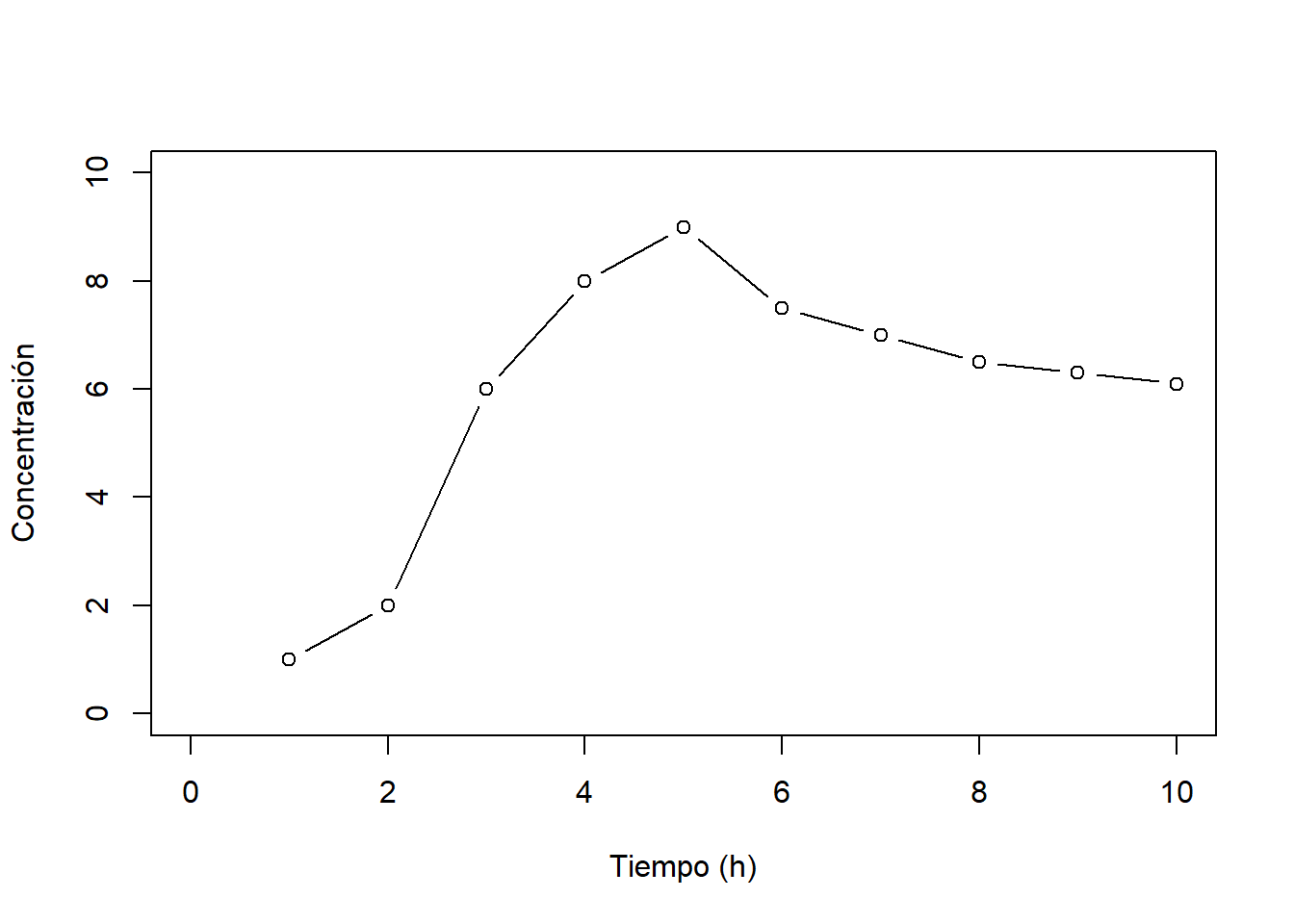 En un estudio farmacocinético, se inyecta una cierta cantidad de un componente farmacológico en sangre. Se reclutan 15 individuos y para cada uno de ellos se mide cada hora la concentración en sangre.