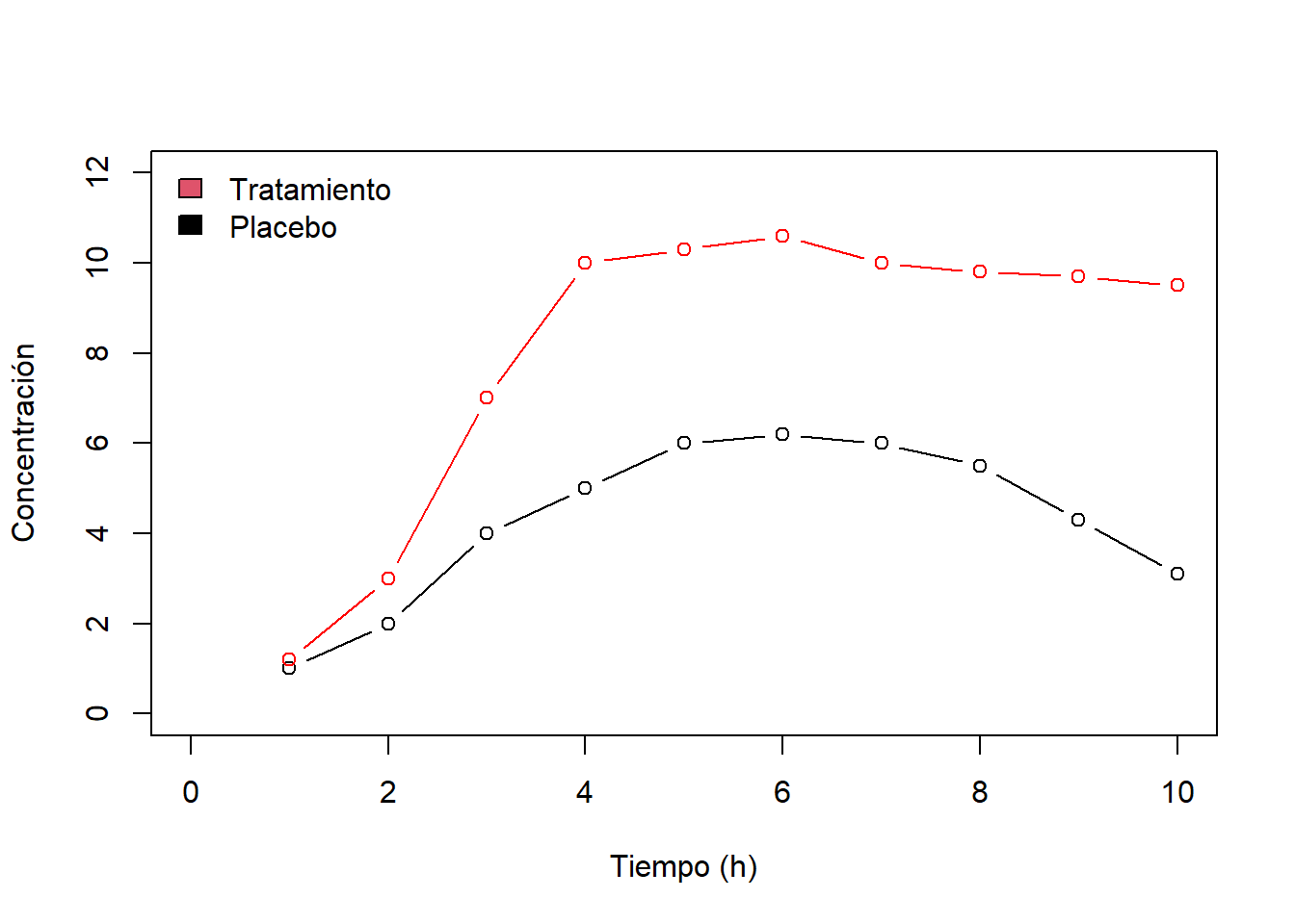 - Ver si la evolución de una variable a lo largo del tiempo es la misma en diferentes grupos. Por ejemplo ver si la concentración de un fármaco evoluaciona de la misma manera que otro fármaco ó placebo.