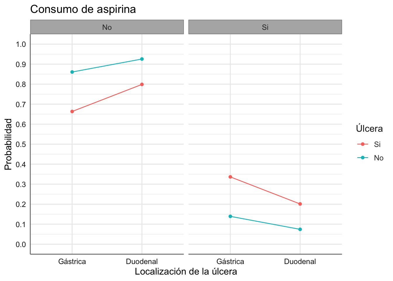 | Tipo Úlcera | Úlcera / Consumo de aspirina | No | Si |