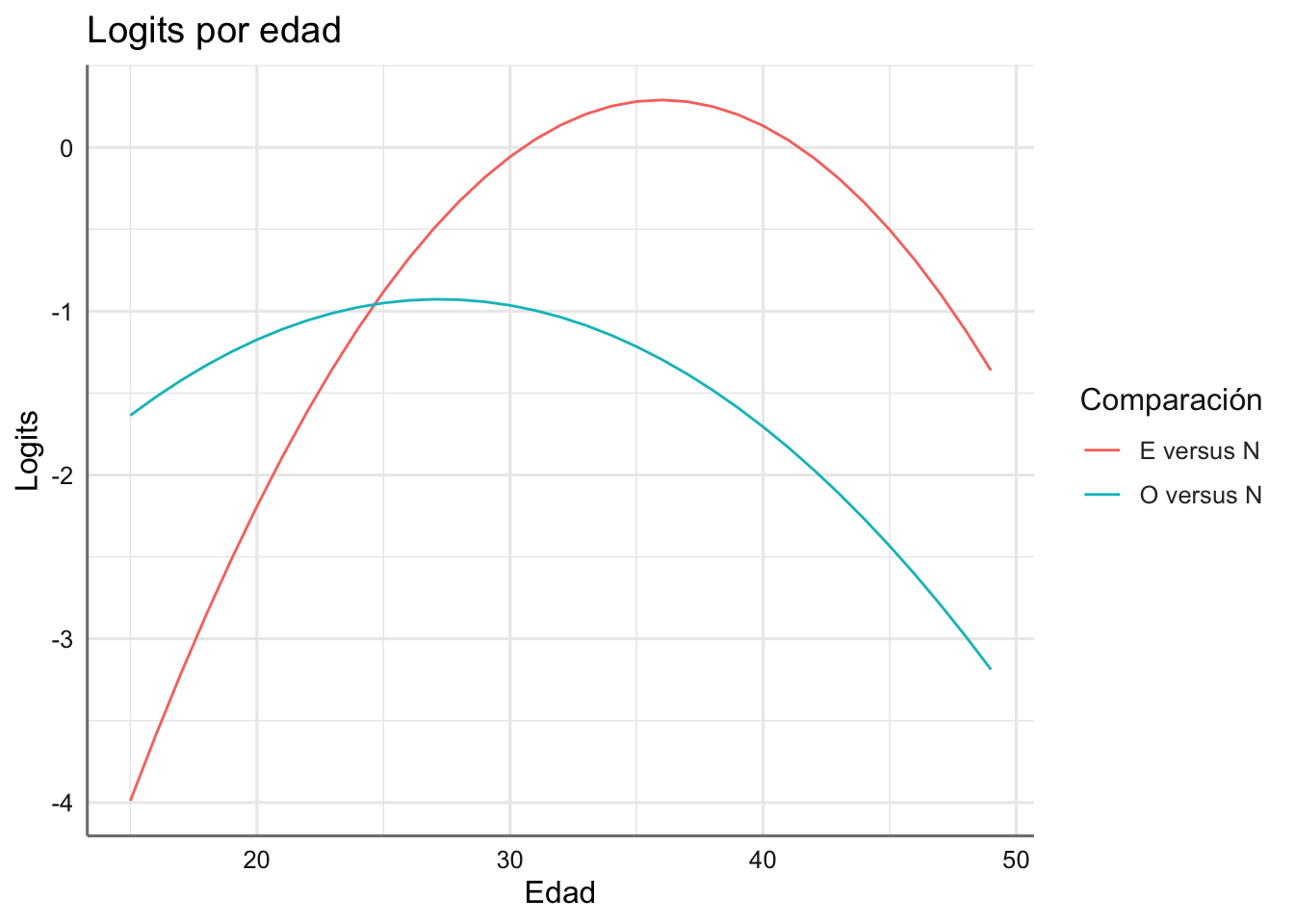 - Construye la variable log(edad-16)y y representa el gráfico del punto 2 para esta nueva variable (sustituyendo la variable edad). Ajusta el modelo log-lineal más acertado para representar dicha información. Extrae las conclusiones de dicho modelo.