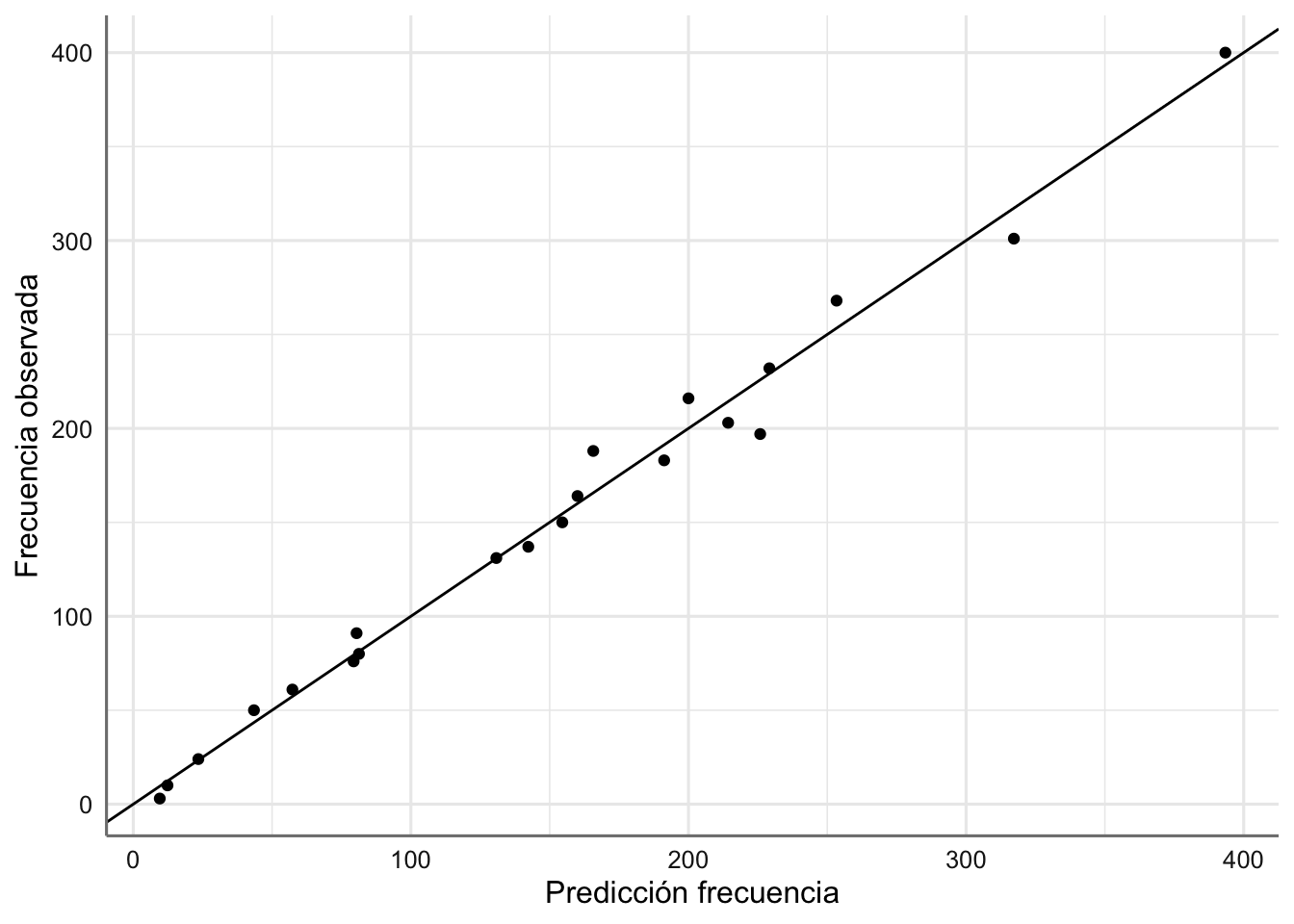 labs(x = "Predicción frecuencia", y = "Frecuencia observada")