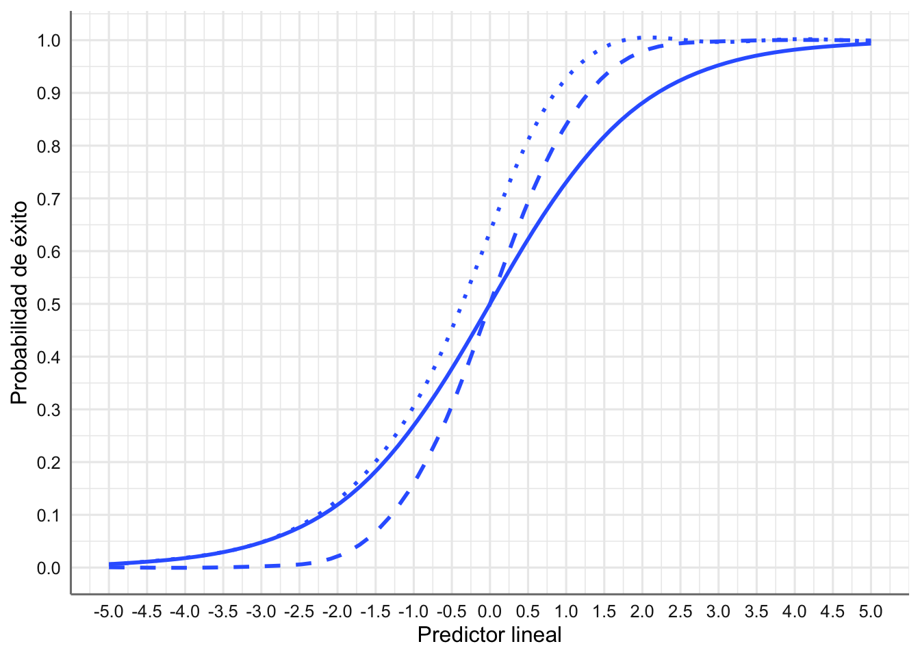 En esta situación la probabilidad de éxito se puede escribir en términos de las variables predictoras (despejando de la ecuación anterior) como:
