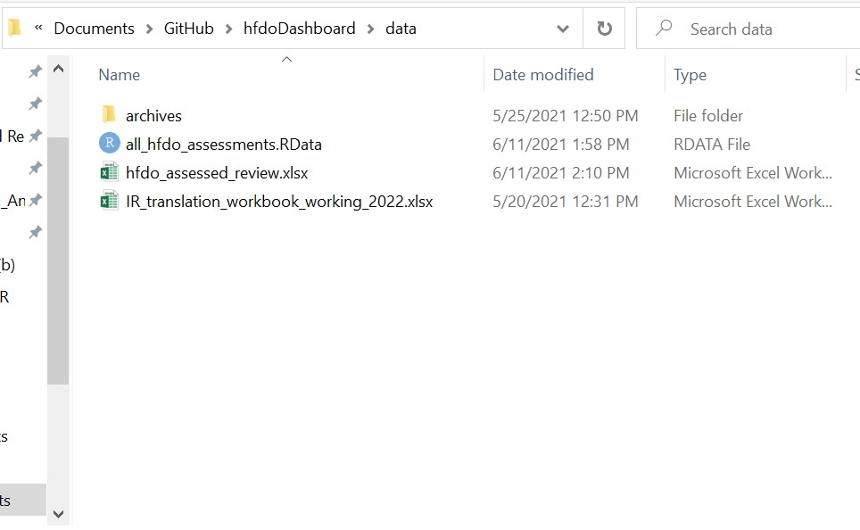 Unlike the site review and assessment review apps, the high frequency dissolved oxygen review app is not within irTools. Instead, it has its own hfdoDashboard repository at DWQ’s GitHub. Head to the repository page and download the application to a zip file.