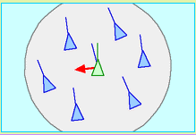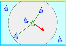 Este modelo usa un grupo de objetos para simular a los pájaros y estos vuelan en un ambiente simulado. Cada triángulo representa un solo pájaro (que Reynolds llamo boid).El modelo usa tres reglas simples de comportamiento que todos sus boids siguen individualmente: