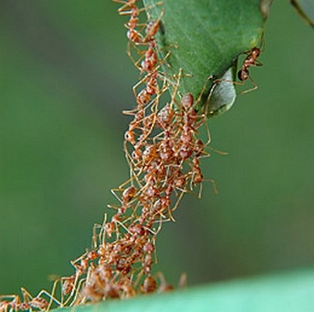 Una pequeña hormiga está caminando en el suelo arenoso de Arizona buscando comida. La comida es para alimentar a la cría que está siendo atendida por otras hormigas en la colonia. Diferentes hormigas tienen diferentes tareas en la colonia, y la hormiga que estamos siguiendo se encarga de abandonar el nido todos los días en busca de comida. El aspecto sorprendente de las colonias de hormigas es que existe una estructura organizacional que no está controlada por la reina o por un pequeño grupo de hormigas burocráticas. Tampoco hay un plan o una lista de tareas que las hormigas estén siguiendo. No, la complejidad de la colonia de hormigas surge de las interacciones locales entre las hormigas. Las hormigas siguen un rastro de feromonas, que les indica que otras hormigas de la colonia encontrarón comida y dejan caer las feromonas en su camino de regreso al nido. El uso de las feromonas son una forma en que las hormigas se comunican con las demás (“sigue mi rastro y tú puedes encontrar comida”). El rastro de feromona se evaporará a cierta velocidad y, por lo tanto, solo son de uso limitado. Si otras hormigas no siguen este camino el sendero desaparecerá. Pero cuando el camino se ve reforzado por el uso de otras puede surgir una carretera de hormigas. En tal carretera, vemos un carril de hormigas sin comida siguiendo la señal de la feromona, y en el otro carril hormigas que traen comida al nido. Existe una enorme diversidad de especies de hormigas, todas las cuales tienen alguna variación en su organización social. Algunas especies de hormigas producen hormigas con diferentes características físicas, que se distinguen por su papel en la colonia: trabajadores, recolectores, soldados, etc. En otras especies de hormigas, todas las hormigas de la colonia son físicamente similares y pueden cambiar de roles cuando sea necesario. por ejemplo, cuando un oso hormiguero mata a las hormigas forrajeras, la colonia experimentará una reducción de los alimentos que se entregan, lo que luego indica a otras hormigas que intercambien sus papeles y esto hace que el ambiente de las hormigas cambie, lo que posteriormente cambia el comportamiento de otras hormigas. Esta influencia indirecta de los agentes a través del cambio del medio ambiente se denomina estigmatixación,otro ejemplo de estigmatización son los senderos digitales que desarrollamos cuando interactuamos con sitios web al comprar libros, alquilar dvds o escuchar archivos de música, dejamos información “Feromonas”. Recibimos recomendaciones de otros libros, DVD o música que a la gente “le gusta” que usted también compró, alquiló o escuchó. Estas interacciones estigmérgicas pueden conducir a un refuerzo de elecciones. Las películas populares que aparecen en YouTube tienden a atraer aún más espectadores Si queremos entender cómo ciertos libros, películas o canciones se vuelven tan populares, debemos analizar las diversas formas en que los demás influyen y refuerzan las elecciones.