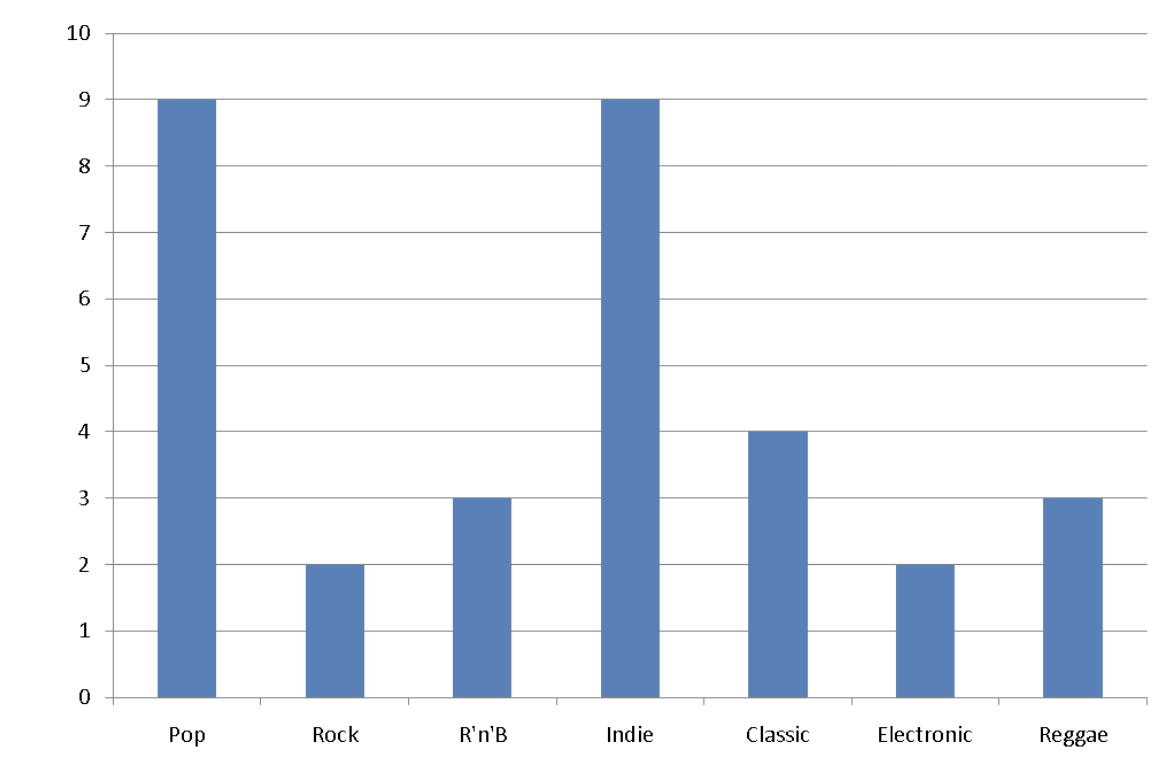 Bar charts can be used for nominal and ordinal data. The height of the columns illustrates frequencies and the width has no meaning.