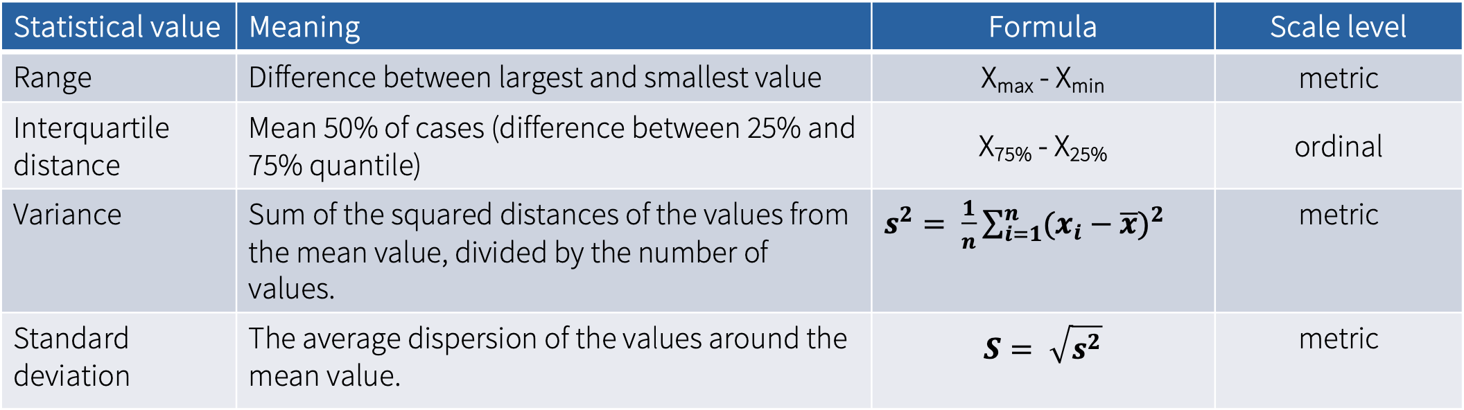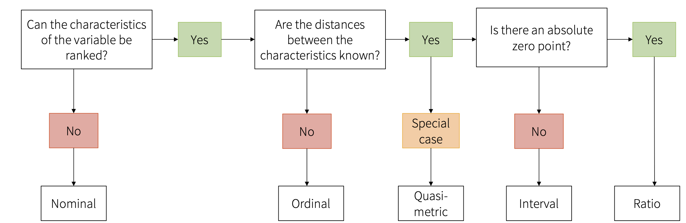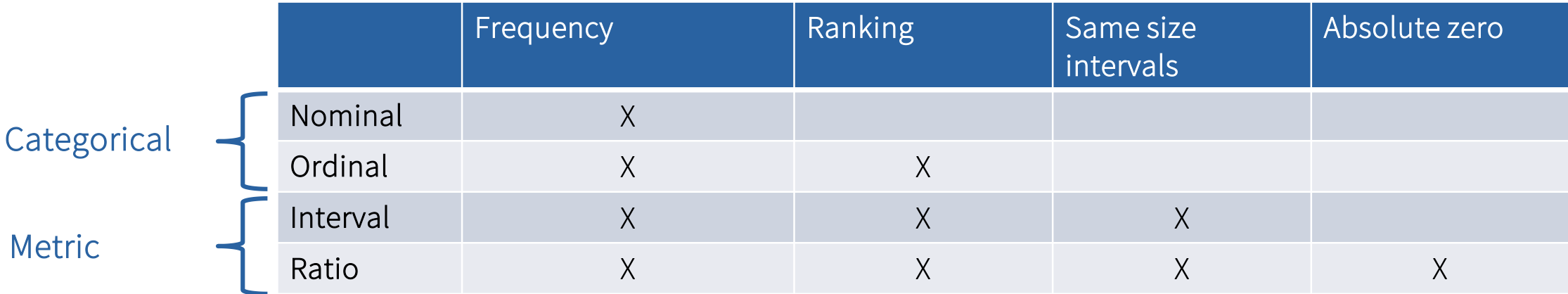 With intervals, the differences between two values are equal and meaningful. We can not only make statements about the ranking of the objects, but also about the size of their distances, i.e., the difference between the two values (the interval).