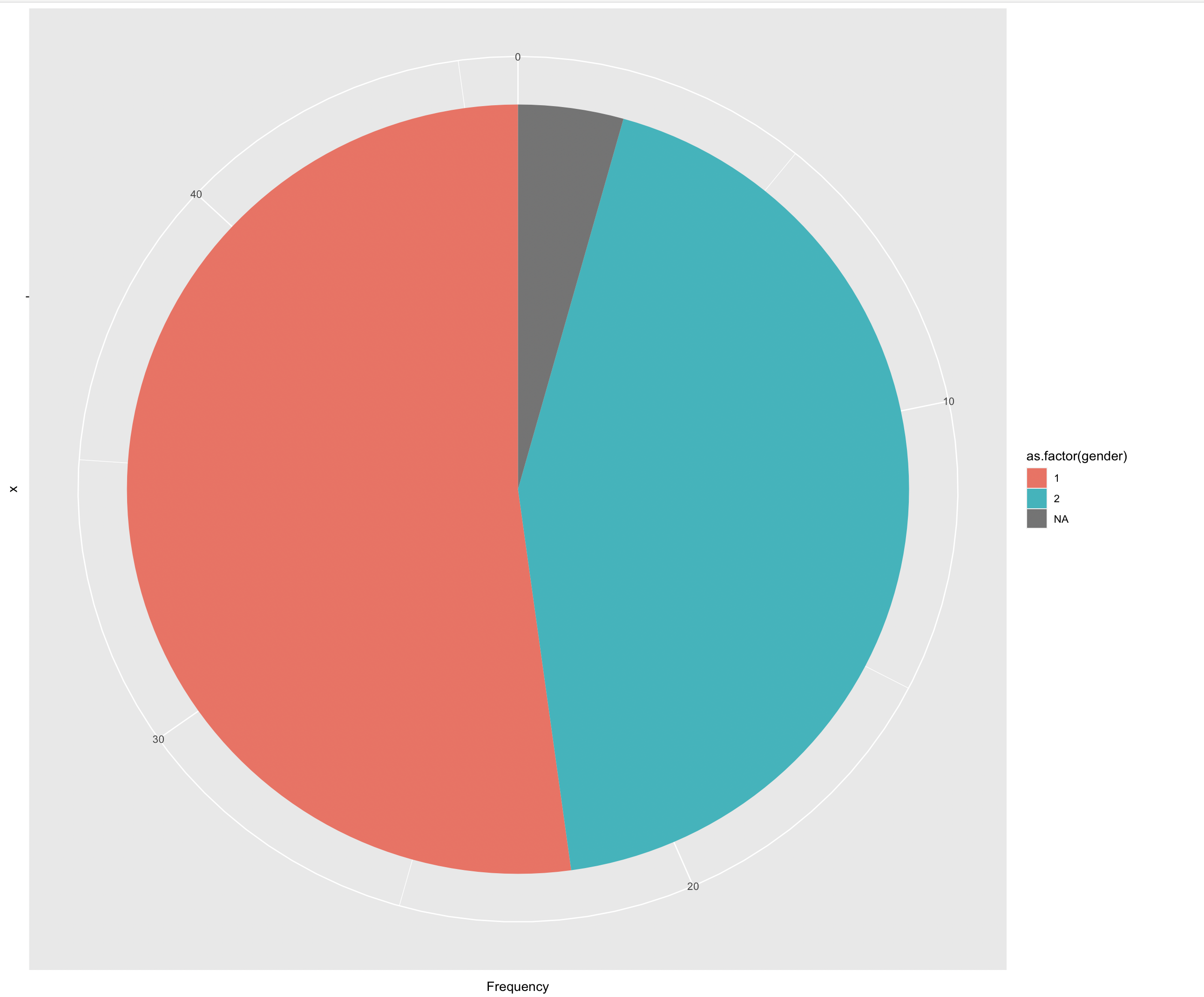ggplot(gender_freq_perc, aes(x="", y=Frequency, fill=as.factor(gender))) +