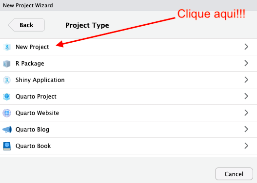 De forma bem simples, podemos dizer que um projeto é uma pasta no seu computador. O importante, é que ela conterá todos os arquivos relacionaods a análise que estamos realizando.