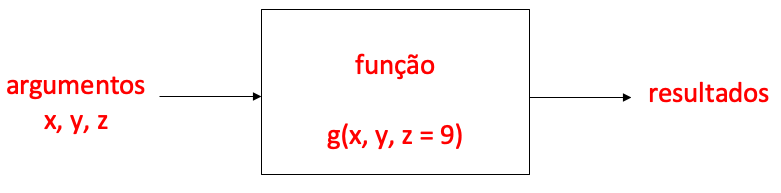 - Alguns argumentos podem estar pré-definidos (como o z da função acima, que não precisa ser definido para executar a função, mas pode ser modificado).