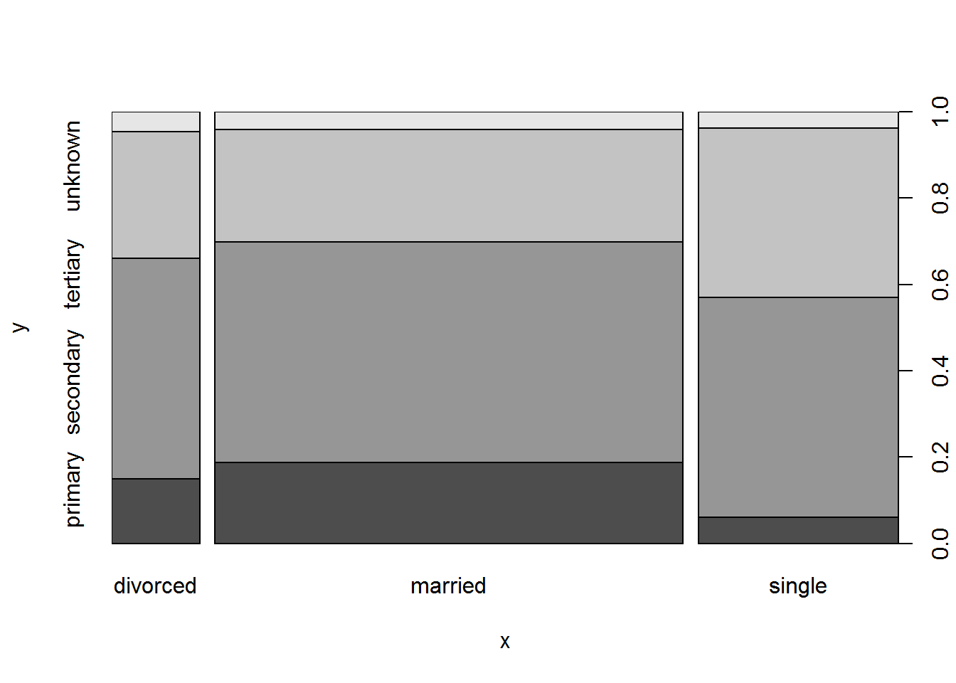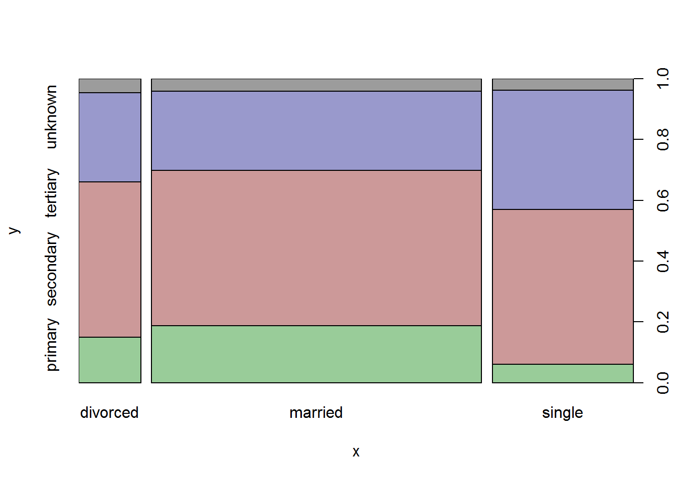 Por ejemplo, intentemos graficar el estado marital con el nivel educativo de las personas en banco