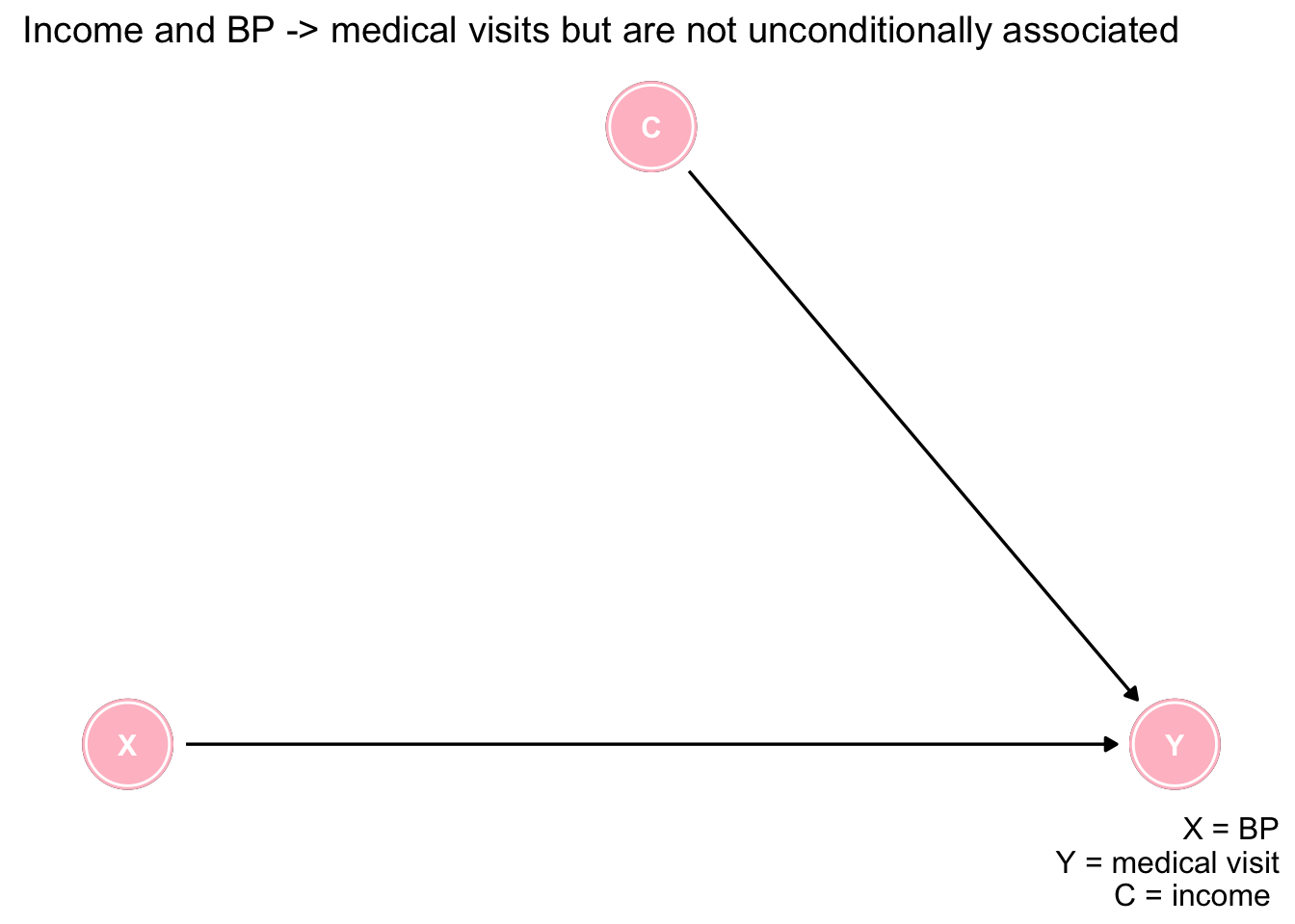 labs(caption = "X = BP\nY = medical visit\nC = income ")