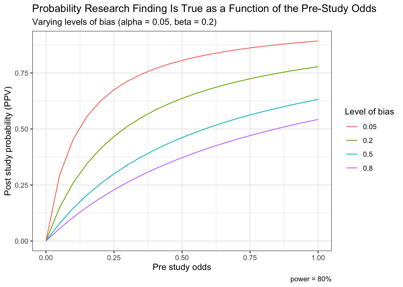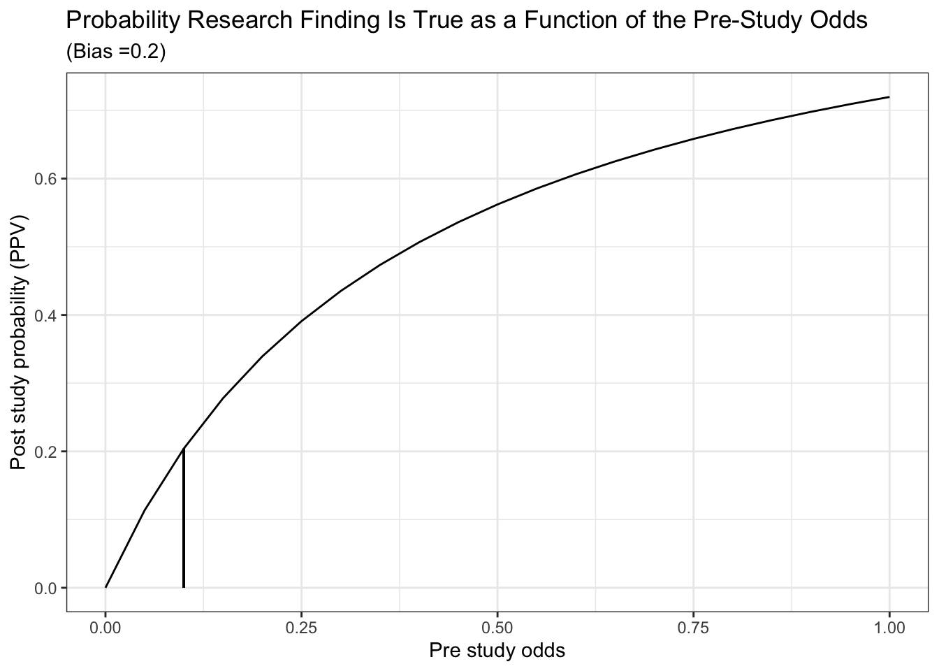 paste("If Bayes Factor = ", round(bf,2), "and the prior probability = ", round(100*prior,2), "%, the posterior probability = ",round(100*post_prob,0), "%")