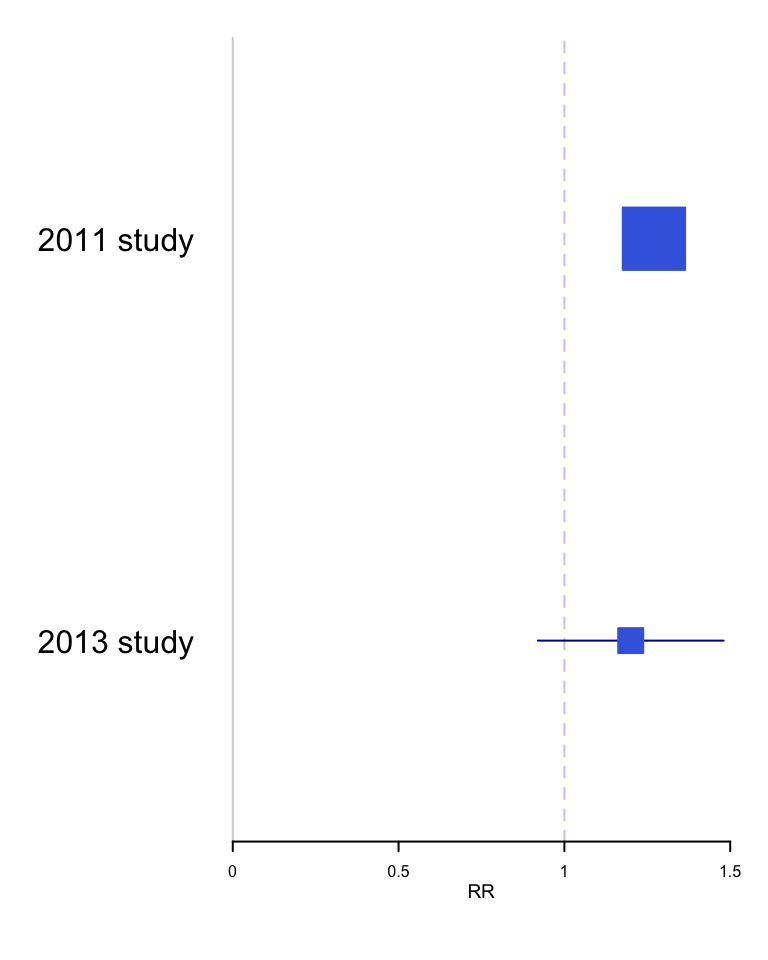 dimnames = list(c("2011 study","2013 study"), c("coef", "lower", "upper")))