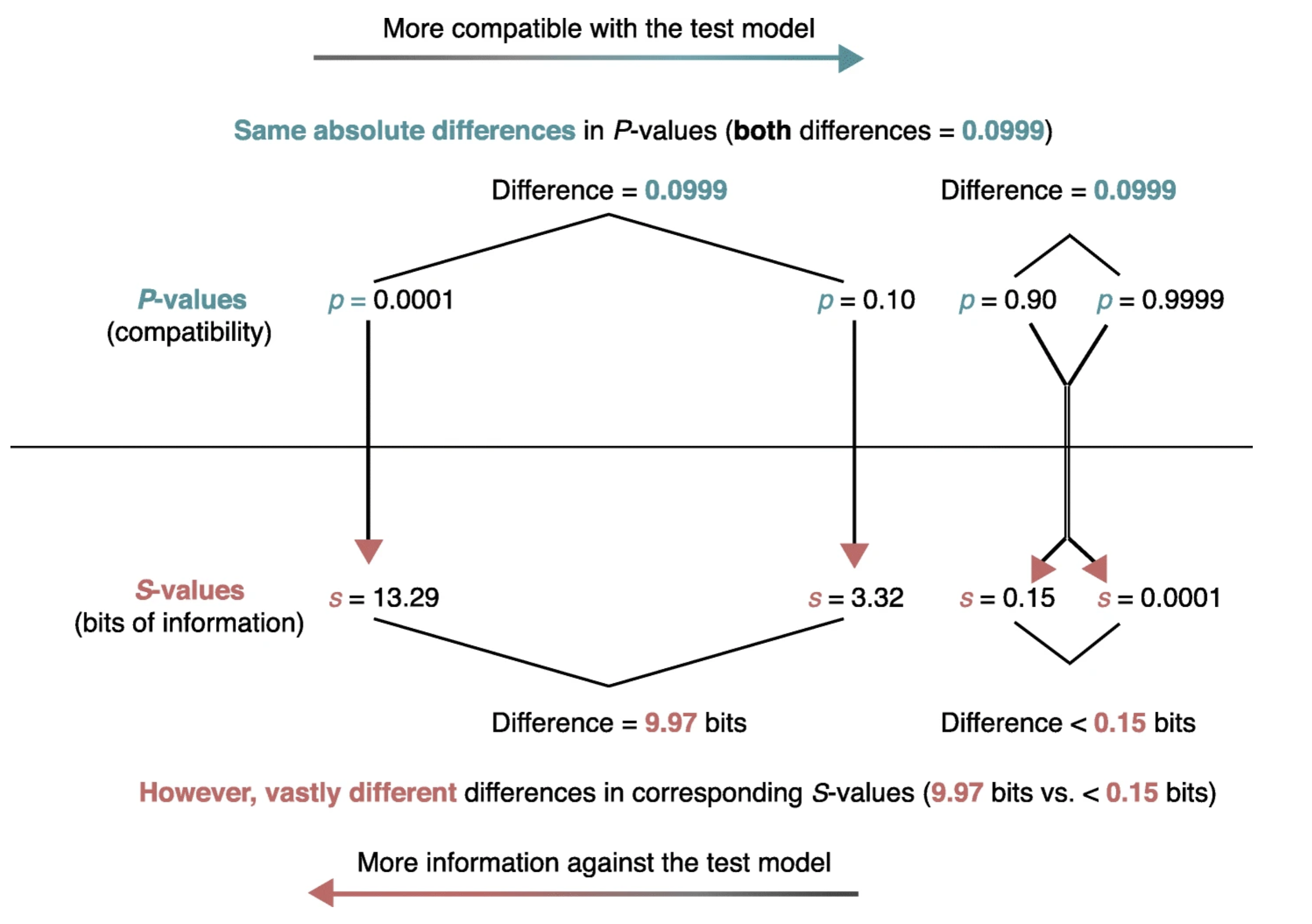 The archetypal NHST roadmap is to set the α or type I (false positive) error rate typically to 5% and the β or type II (false negative) error rate 20% at the design level. While this approach will limit the number of errors made in the long run, hence the term “frequentist” methods, it fails to provide an inferential measure of the evidence for a given experiment. This problem has seen the development of an ersatz solution, the (in)famous p value(S. N. Goodman 1999a). The p value is the probability of getting a result (specifically, a test statistic) at least as extreme as what was observed if every model assumption, in addition to the targeted test hypothesis (usually a null hypothesis), used to compute it were correct. As test statistics are composed of an effect size divided by a standard error, a small p value may occur when there is a trivial effect size but a very large sample size leading to a small standard errors. Given that these characteristics don’t reflect what most consumers of medical research want, it is perhaps not surprising that misinterpretations of the p value abound.
