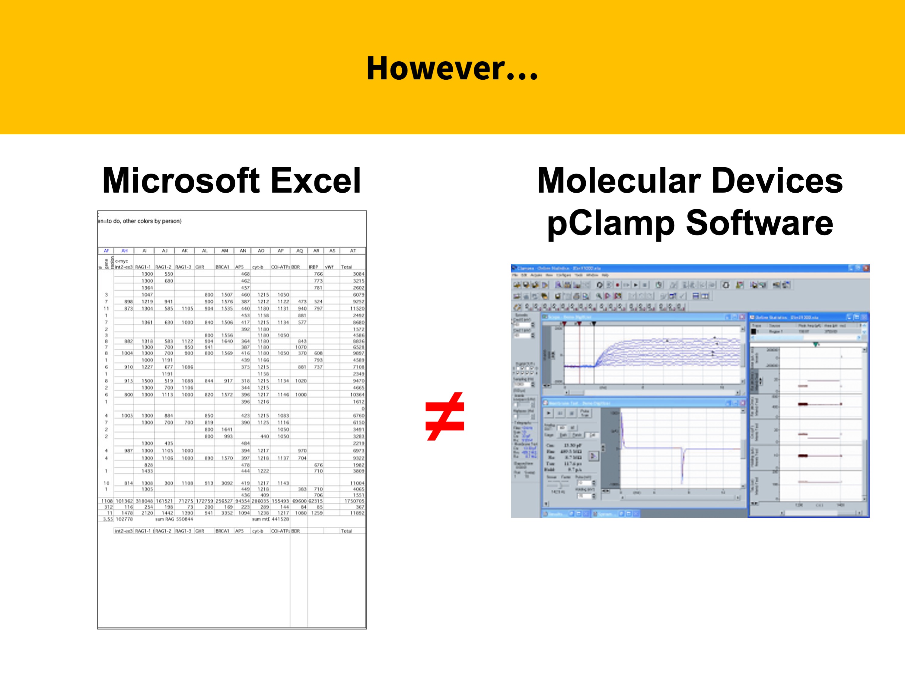 The software you currently use may not be around, be very difficult to gain access, or even run on your PC of the future. Like hardware obsolescence, you should also be thinking about how to save your data using open software formats. Especially for lab researchers, if you use proprietary or homegrown software to collect data, it might be unreadable in the future.
