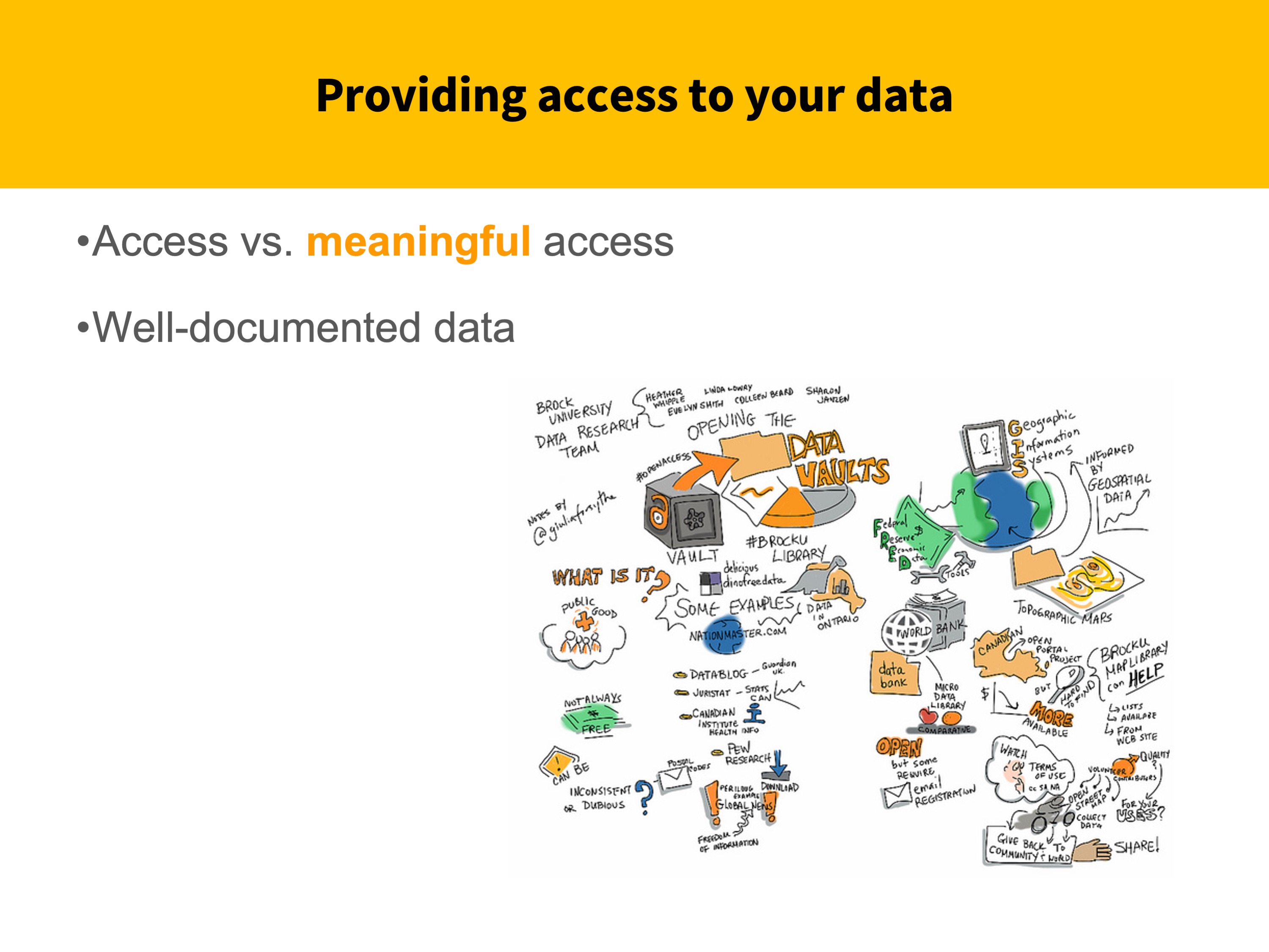 We talked about meaningful access to data. Having a record in our data catalog describing data you have shared is a great way to make the access to your data more meaningful.