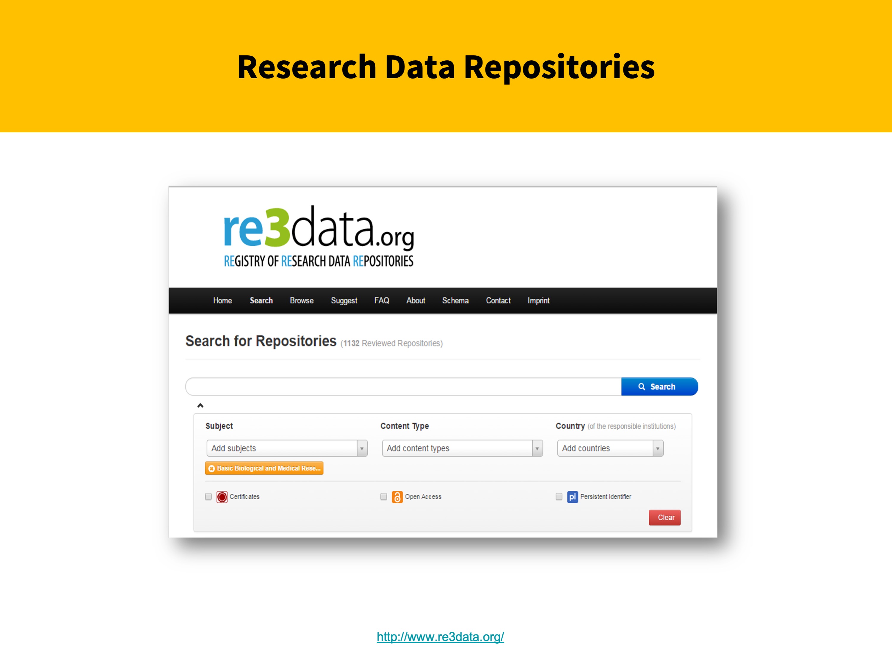 Many more repositories can be found at re3data, which list thousands of repositories across a wide array of subject domains.