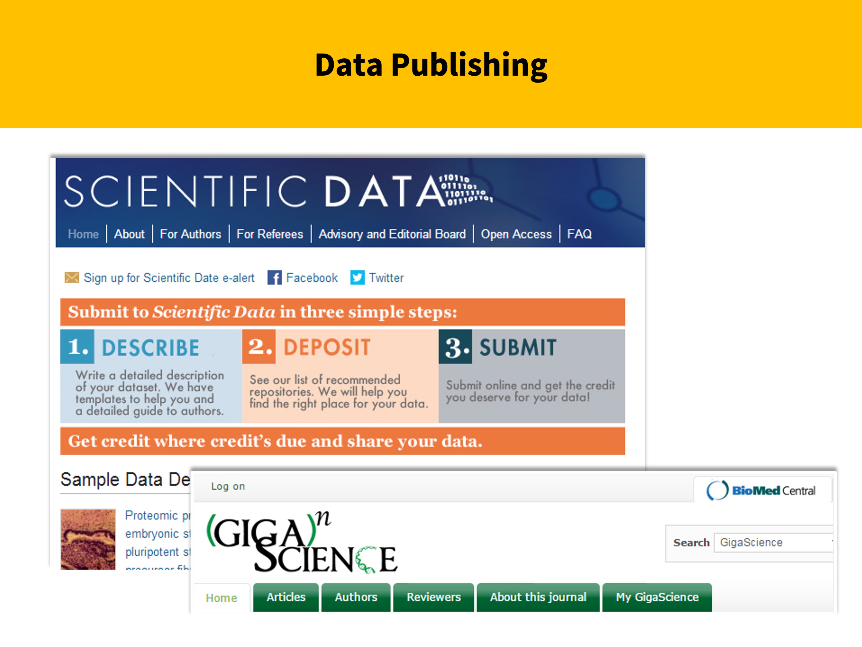 In the past few years there have been an increasing number of data journals. In these journals, the data itself is described rather than providing analysis and results.