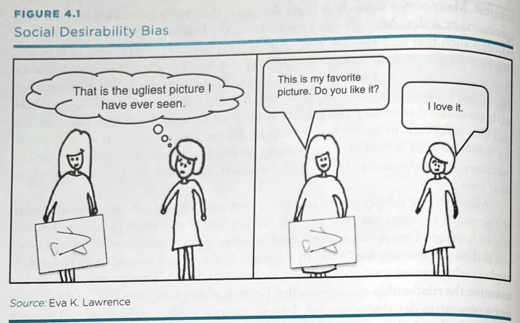 Surveys include self-report data collected through administration of questionnaires in person, through mail, or online. Self-report data are susceptible to social desirability bias. However, you can minimize social desirability bias through neutral item wording and anonymity via questionnaire construction and administration.