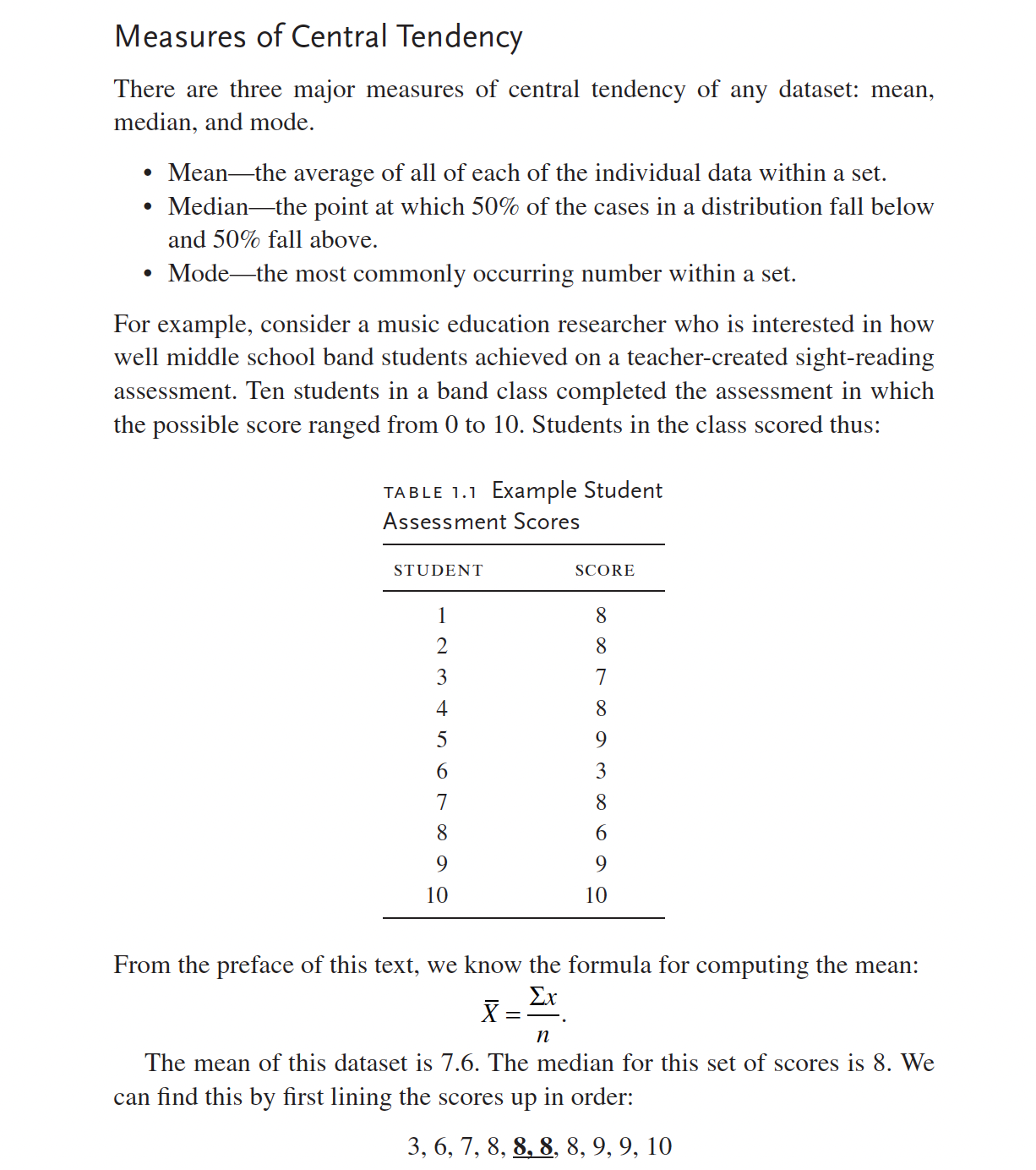 Measures of central tendency are used to describe data with a single number. For instance, the mean represents the average of all of each of the individual data within a set. See the following example from the first Russell chapter: