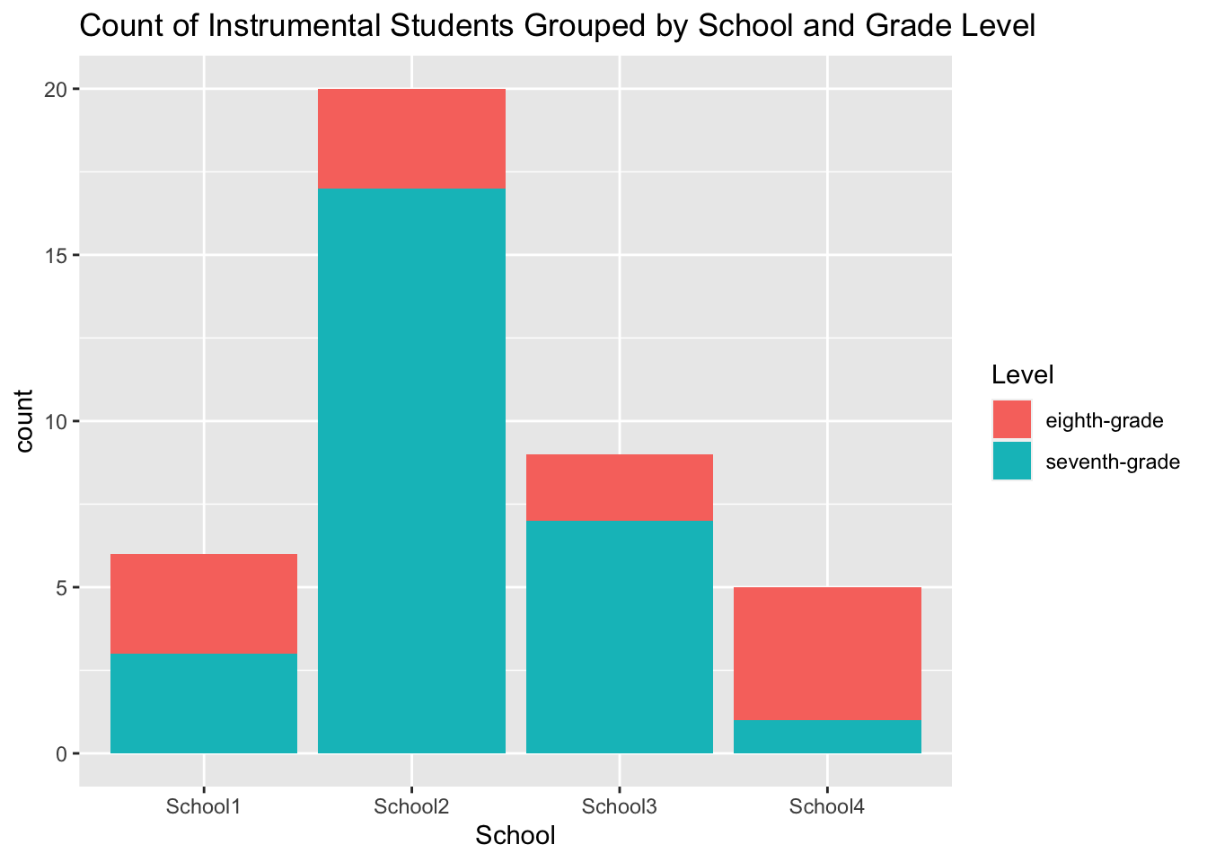 ggtitle("Count of Instrumental Students Grouped by School and Grade Level") +