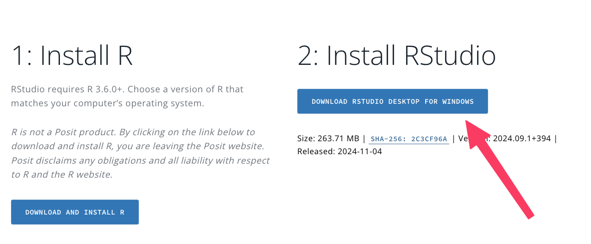 Eftersom att vi redan har installerat R så kan vi gå direkt vidare till Steg 2 och installera RStudio.