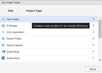 Fortsätt genom att välja projekttypen New Project.