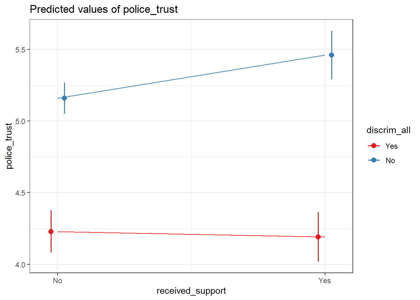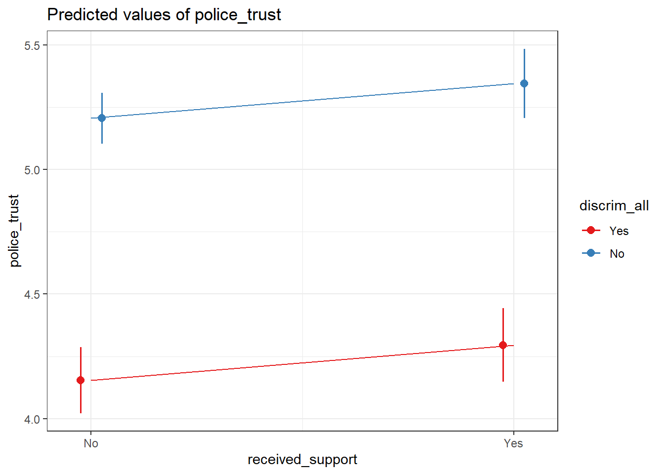 ## lm(formula = police_trust ~ received_support * discrim_all +