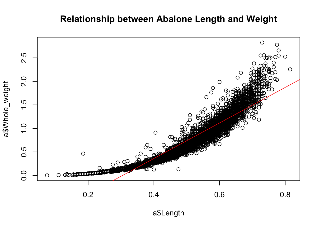 abline(lm(a$Whole_weight~a$Length), col="red")