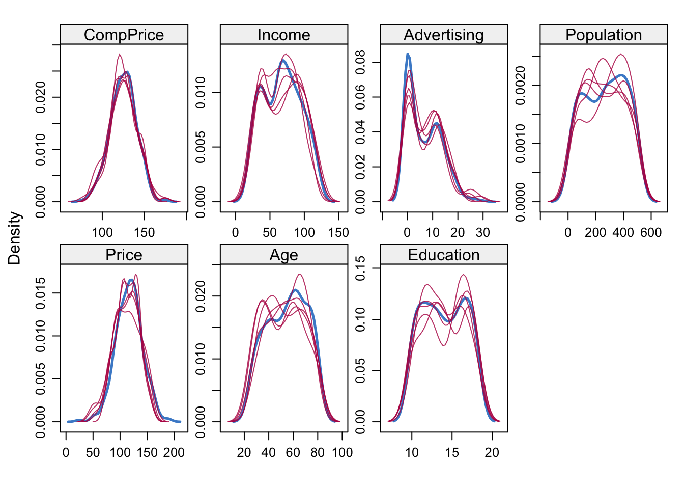 Specifically, \(\hat\beta_{j} = \frac{1}{m} \sum_{i} \hat\beta_{ij}\) and \(s^2_j = \frac{1}{m} \sum_{i} s^2_{ij} + var \hat\beta_{ij} (1 + 1/m)\), where \(\hat\beta_{ij}\) and \(s_{ij}\) are the estimates of and standard errors for the \(i^{th}\) imputed result for \(i = 1,..., m\) and for the \(j^{th}\) parameter.↩
