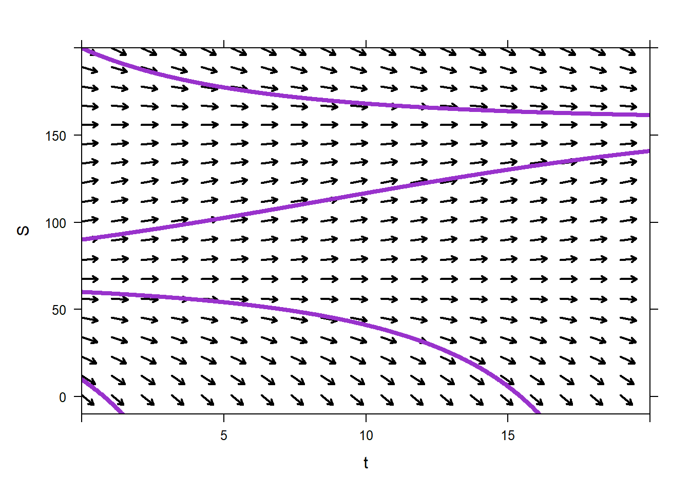 plotODEDirectionFieldto draw a direction field for the ODE. - Using the direction field, determine the long-term population of the squirrels int the park.