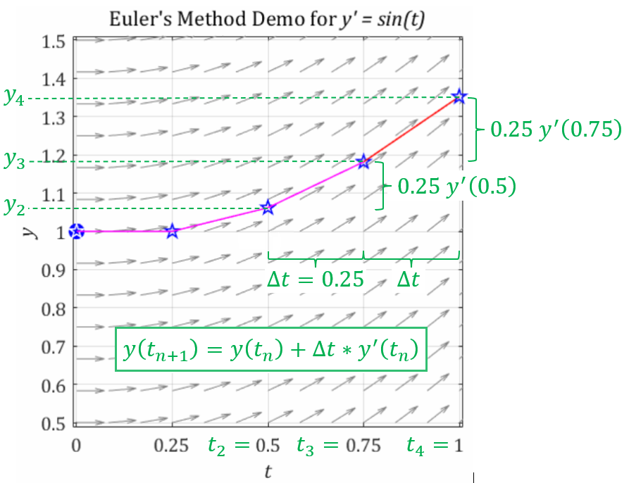 \[y(t_{n+1})=y(t_n)+\Delta t \sin(t_n).\]