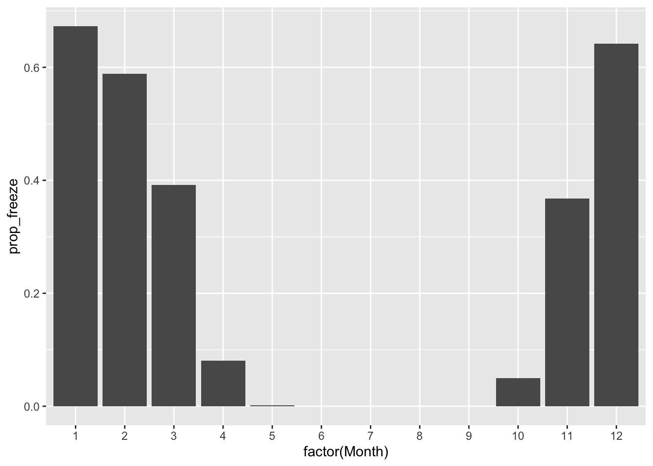 geom_col(aes(x=factor(Month), y=prop_freeze))